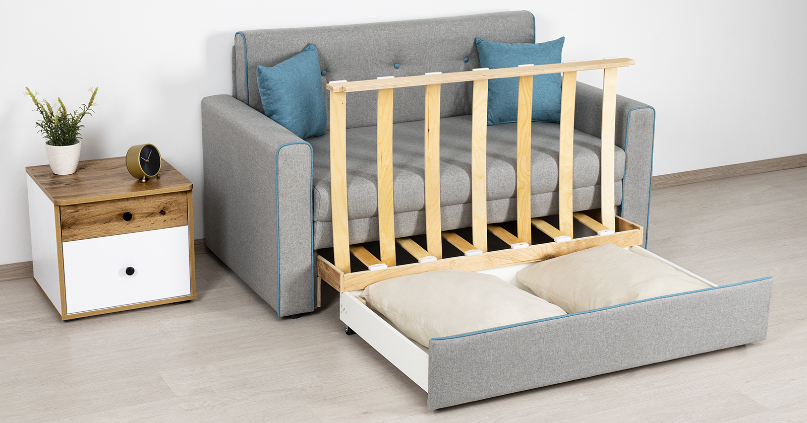 Диван-кровать Найс - компактное современное решение для гостиных, квартир-студий, детских и подростковых комнат. Может использоваться в качестве постоянного спального места для детей и подростков или гостевого спального места взрослого.