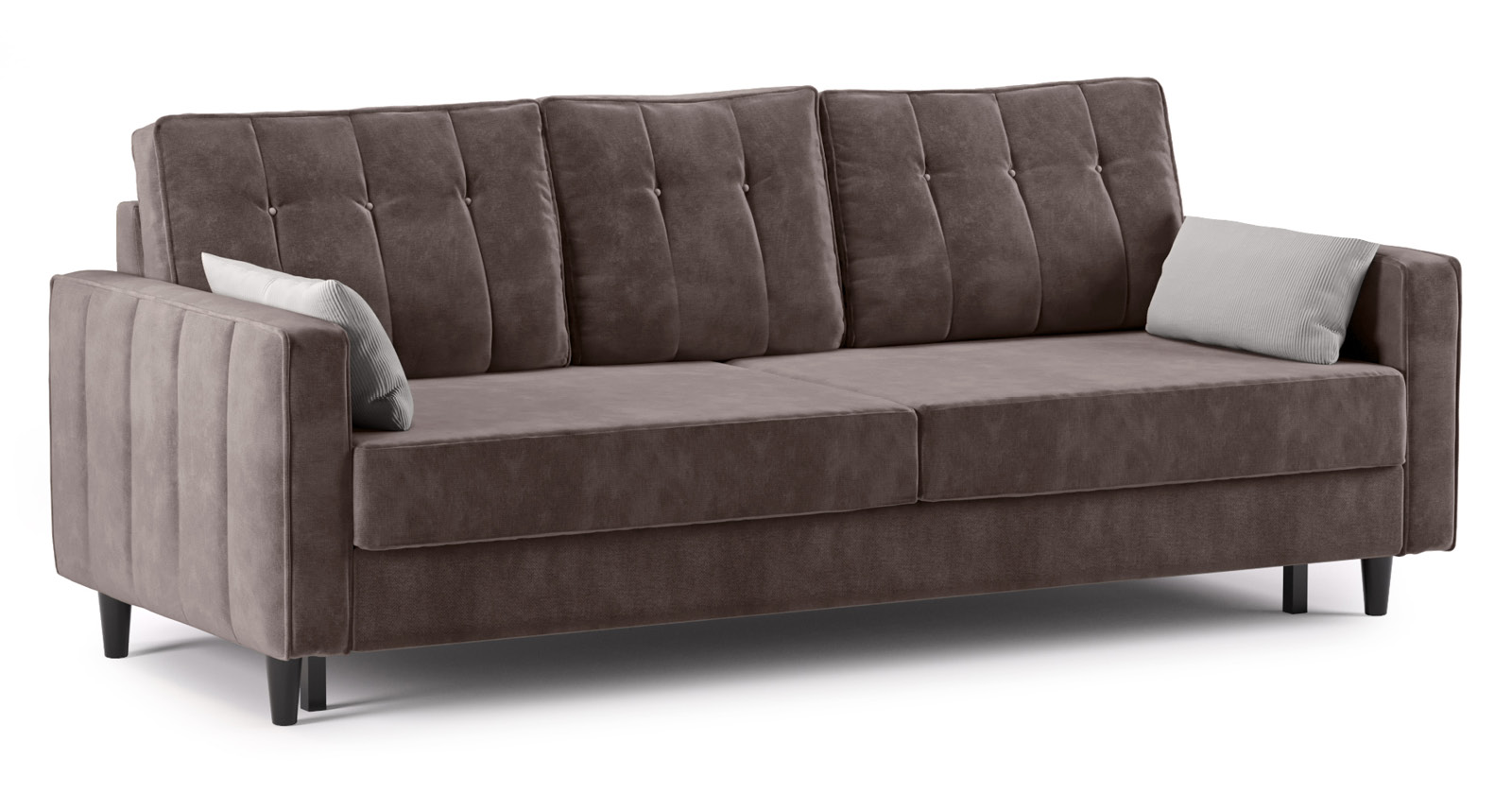 Объемные подушки дивана обеспечивают эргономичную посадку, а ровное спальное место - полноценный ночной отдых.
