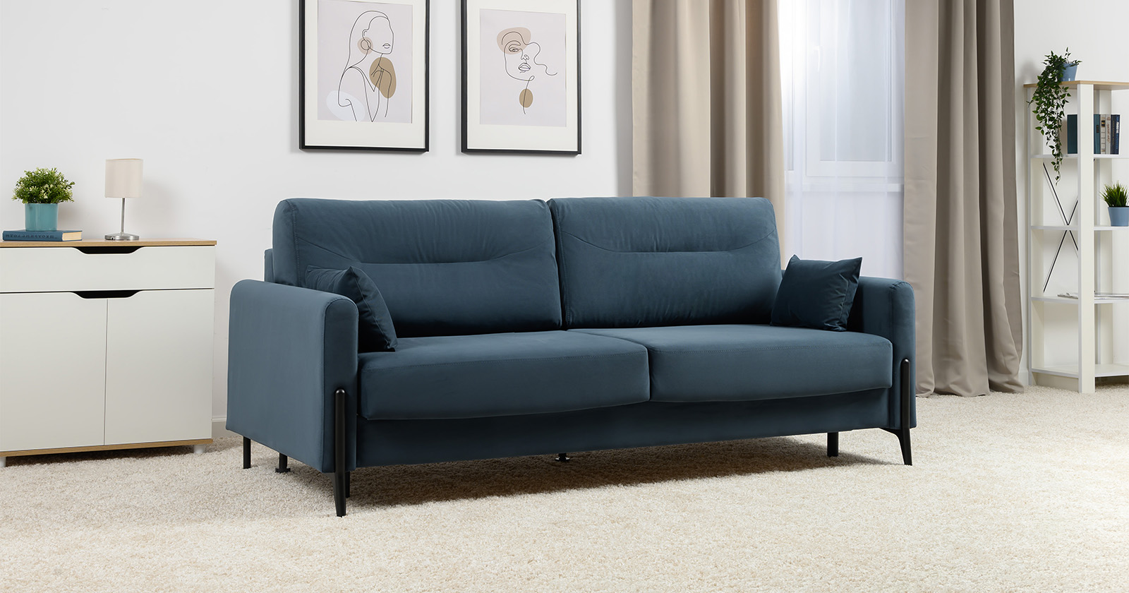 Диван-кровать прямой Барселона ТД 674 велюр Diagonal 999 синий