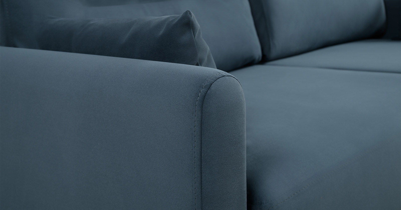 Металлические опоры плавно переходят в декоративный элемент подлокотника. Декоративная утяжка по приспинным подушкам