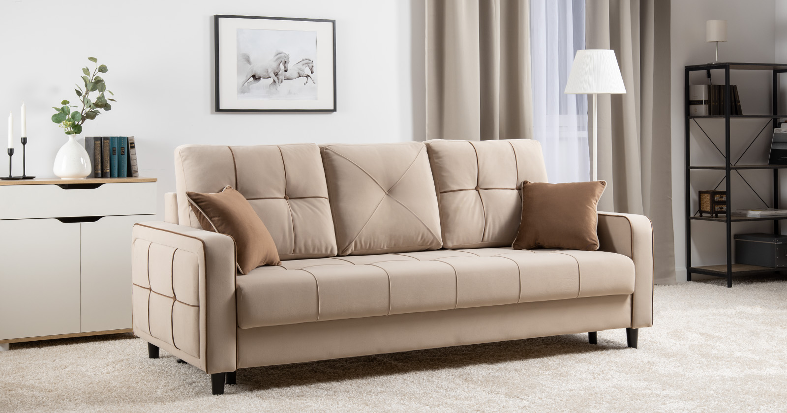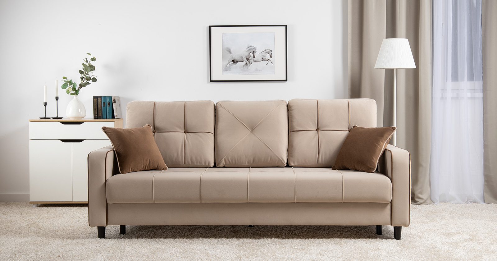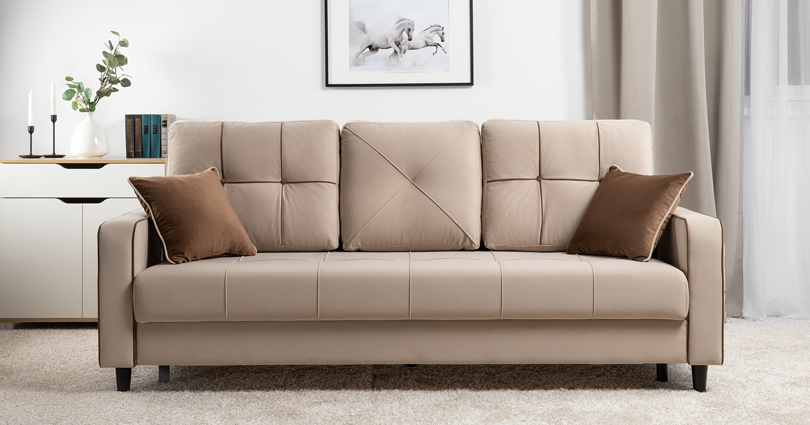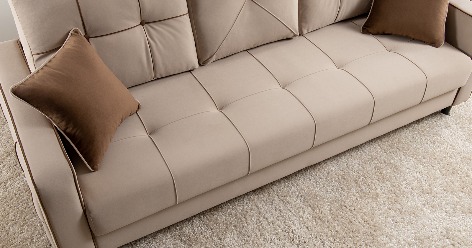 Диван-кровать прямой Черри ТД 284 велюр Irida 02 светло-бежевый, Эвита шоколад бежево-коричневый