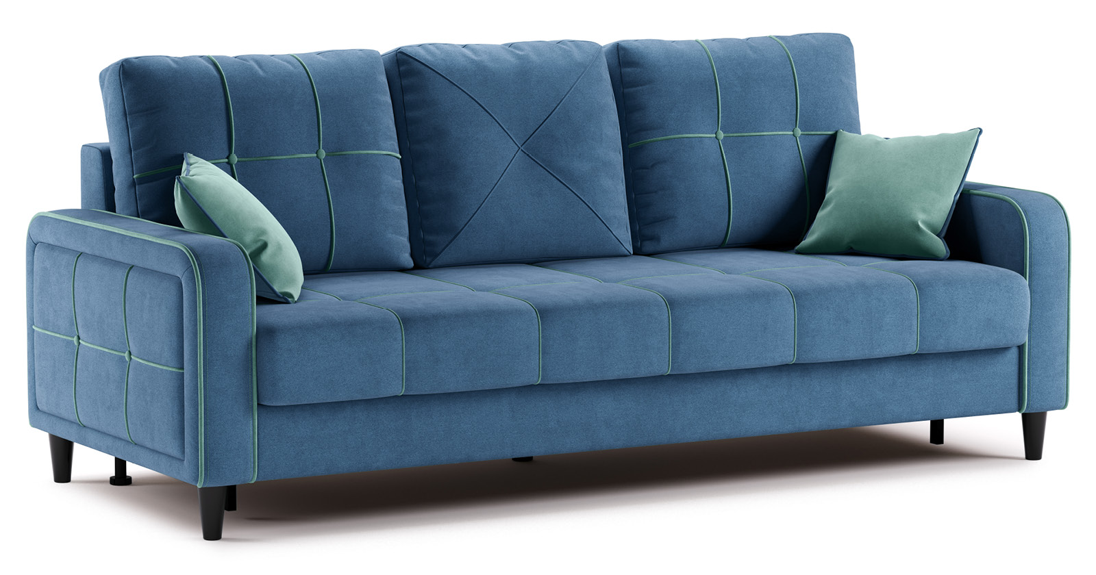 Диван-кровать прямой Черри ТД 285 велюр Irida 07 синий, Эвита пистачио ментоловый