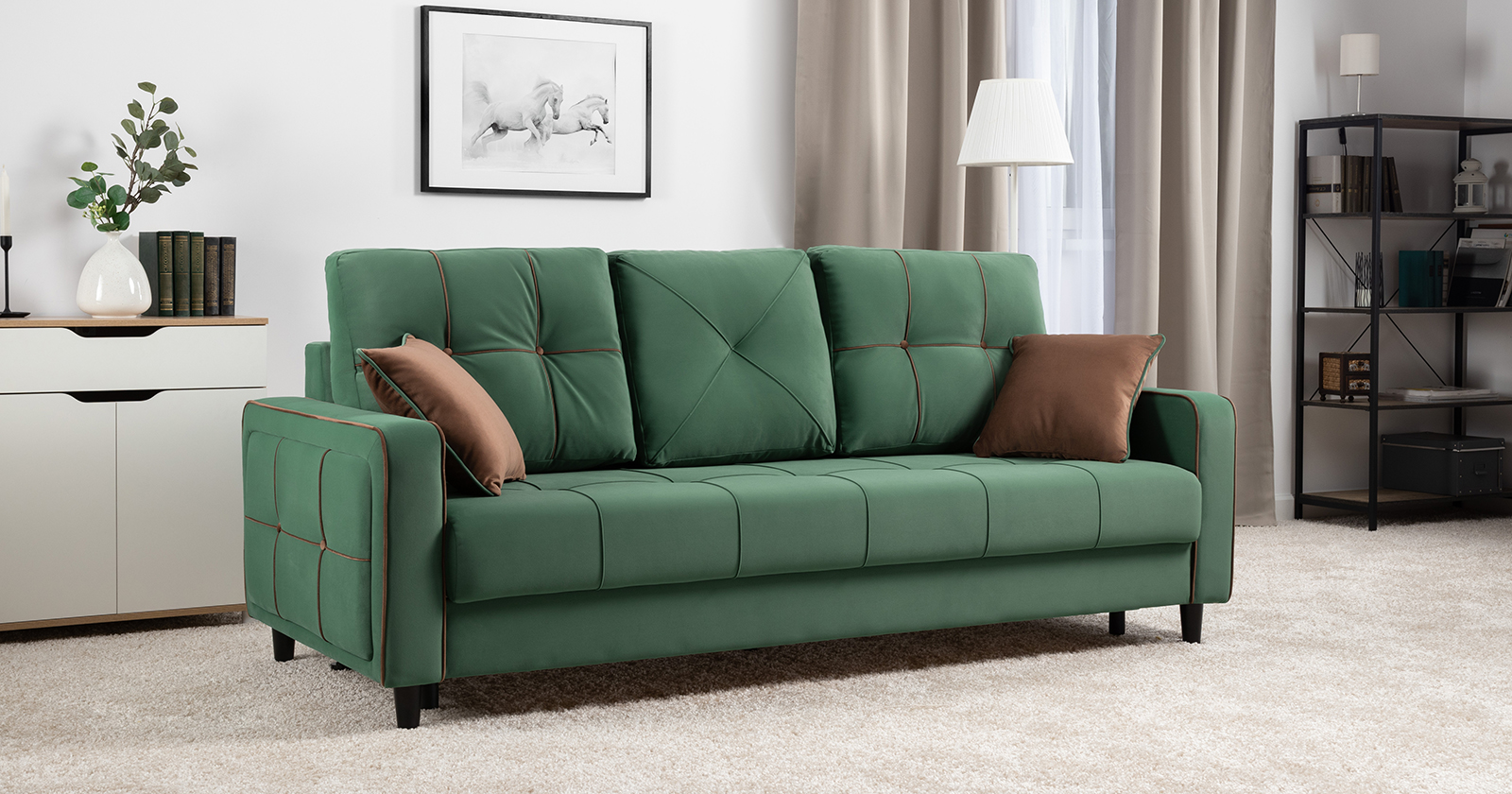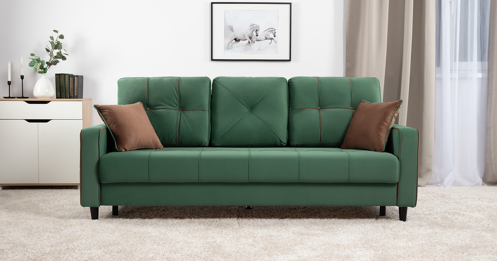 Диван-кровать прямой Френсис ТД 260 велюр Амиго грин нефритовый зеленый