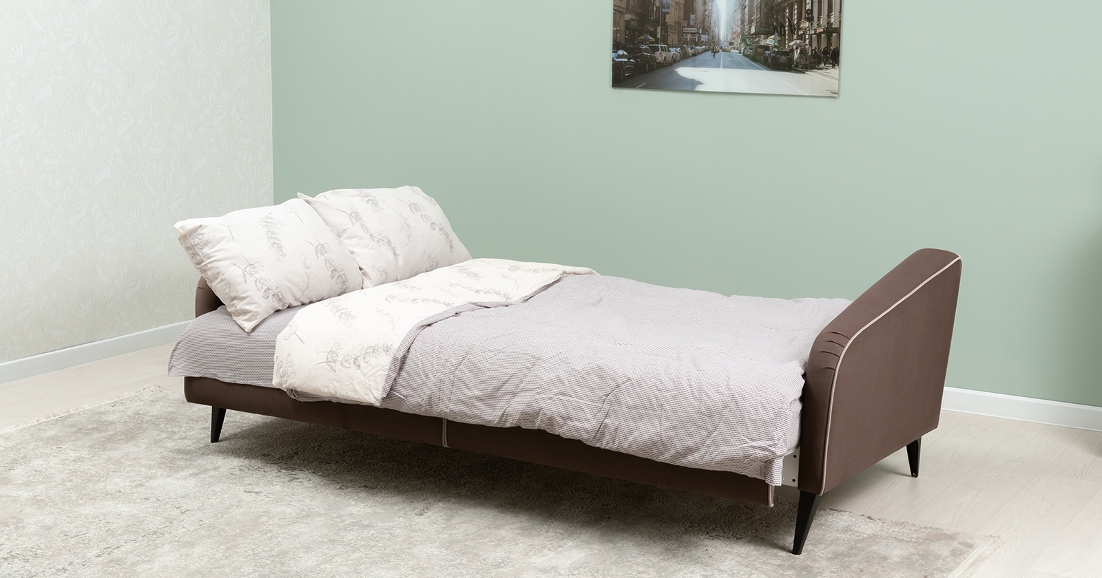 Стильный компактный диван-книжка для современных интерьеров. Дополнит гостиную, сэкономит место в гостевой, сделает уютным и функциональным кабинет или офис.