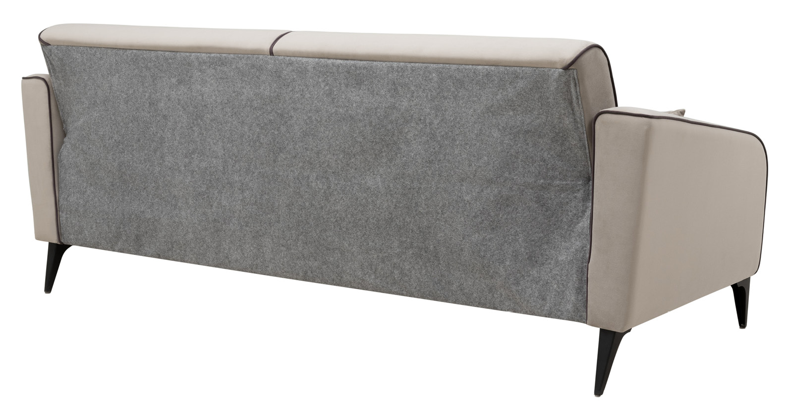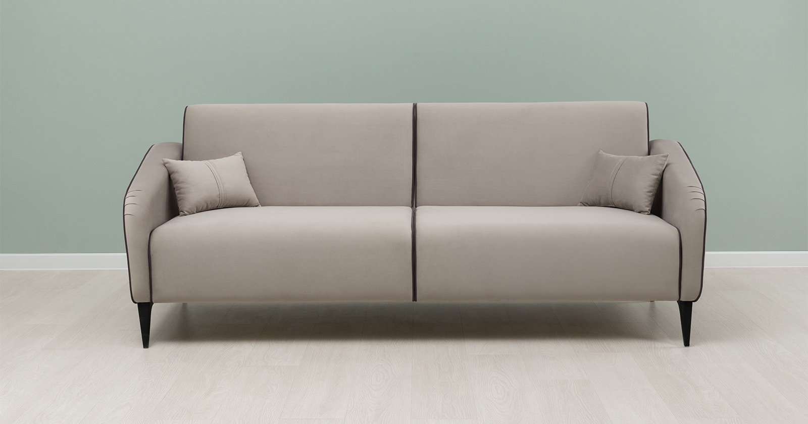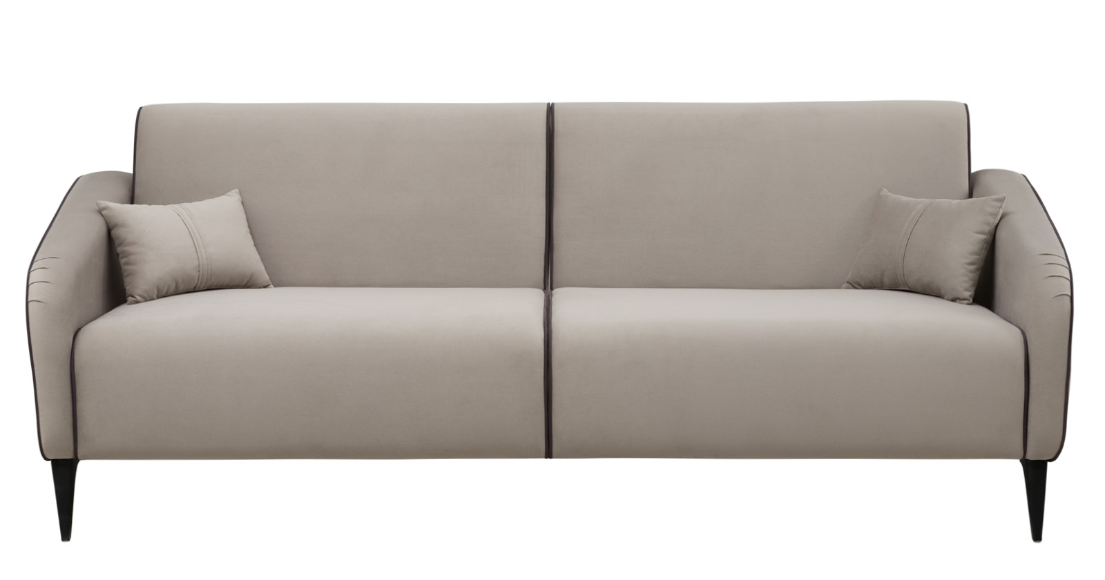 Спинка и сиденье разделяются пополам двойным кантом по центру и одинарным по краям сидения, для придания одной единой формы. Подлокотники с изгибом на лицевой стороне и мягкими закругленным углом со складками, с выраженным контрастным ровным кантом по внешнему контуру изделия и изогнутой линией канта.