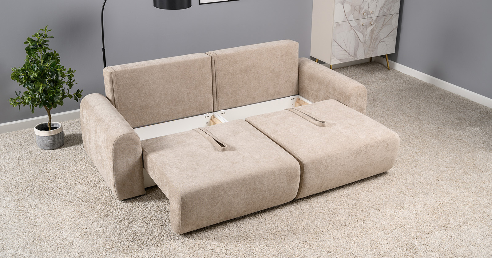 Диван-кровать прямой Тэдди 1502 композиция 1, букле Pique 006 бежевый, модульная система