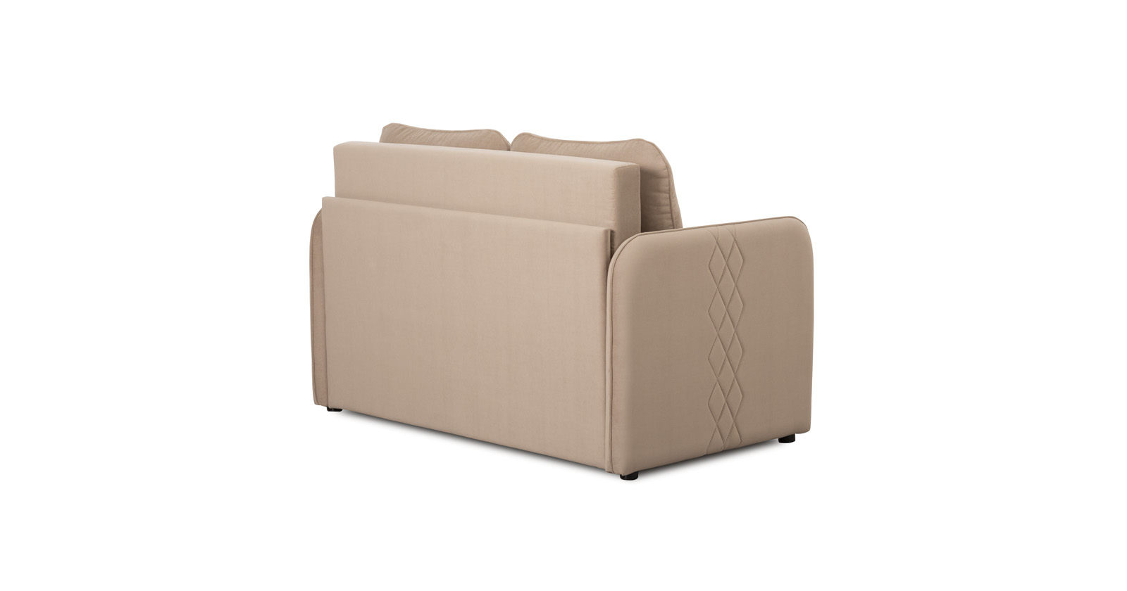Стильный компактный диван для детской и гостиной. При своих скромных размерах он трансформируется в полноценное спальное место для детей и подростков. Лаконичный дизайн в виде декоративной стежки подчеркивает фактуру велюра, а небольшие размеры позволят разместить его в любом пространстве.