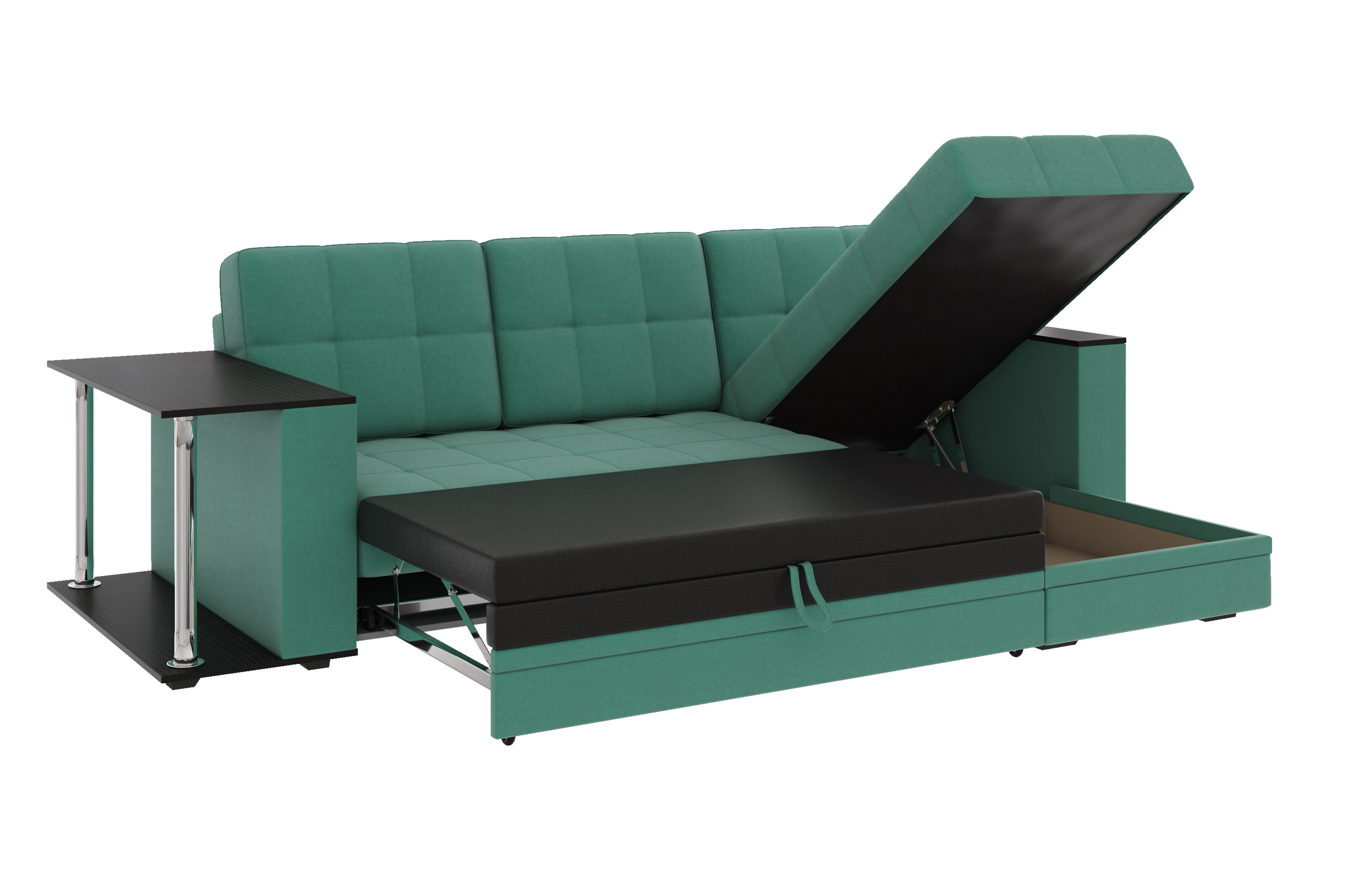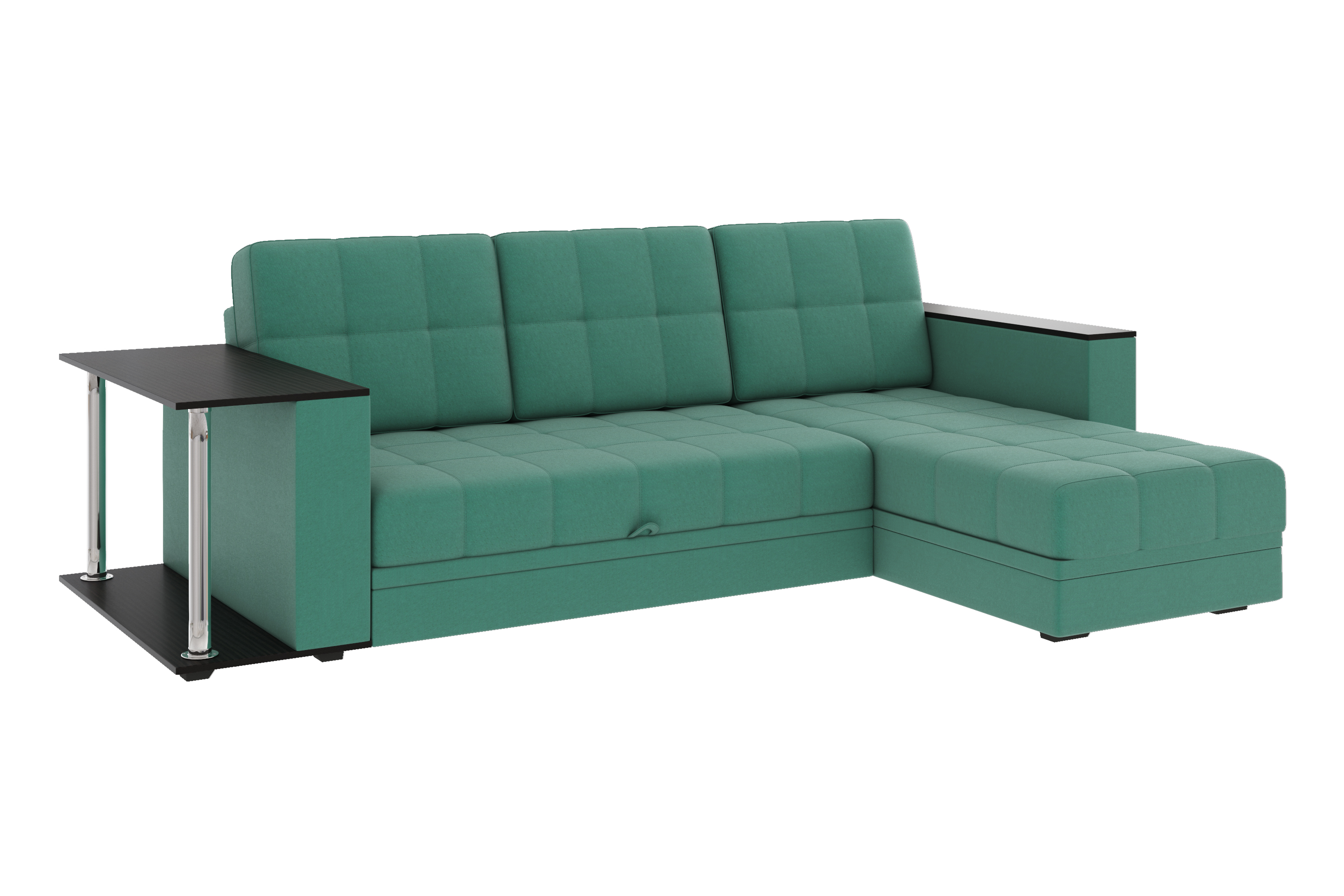 Диван-кровать угловой Атлант со столиком велюр зеленый со спальным местом (сборка на любую сторону)