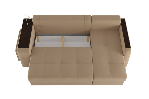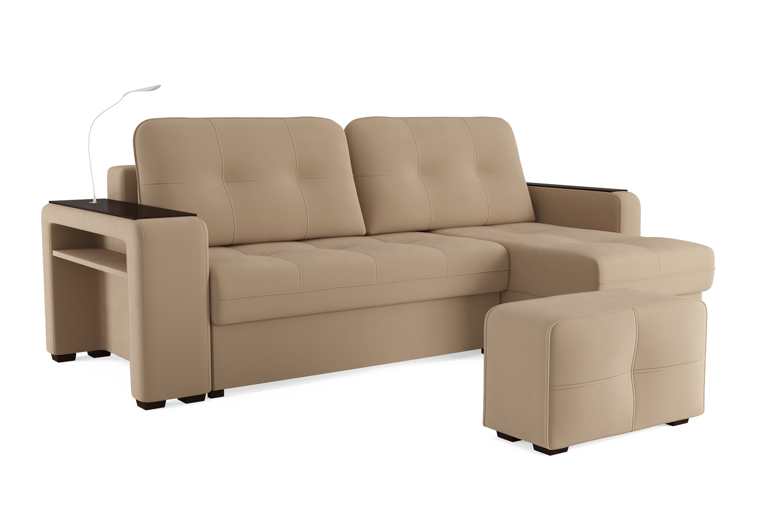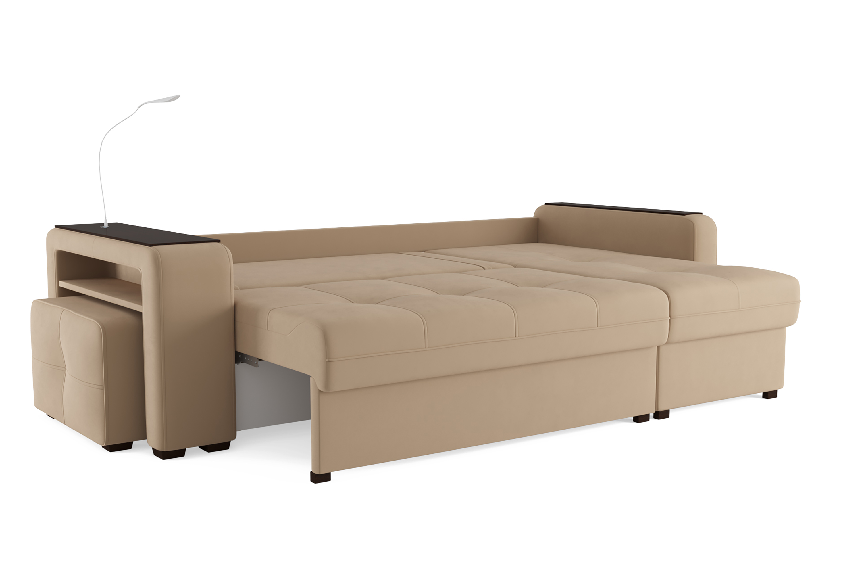 Диван-кровать угловой SMART 4 правый, велюр Velutto 05 бежевый (Б4-2Т-1Пф-Б3)