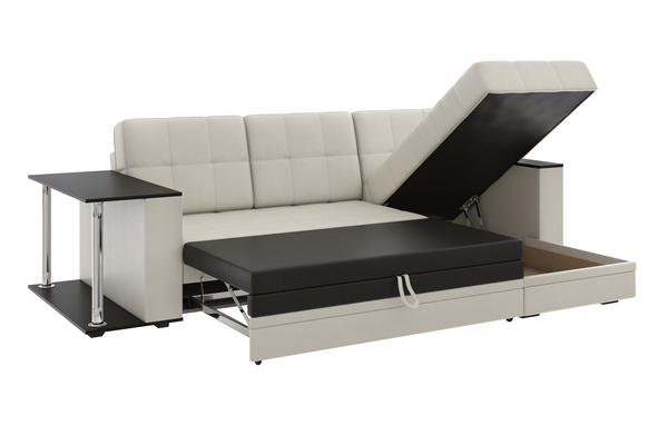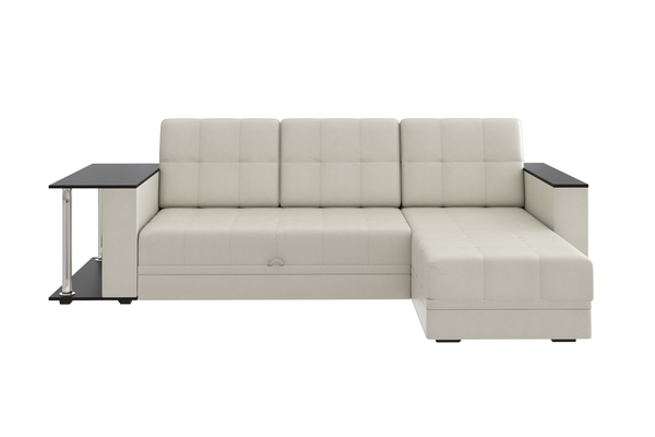Диван-кровать угловой Атлант кожзам бежевый со столиком Венге со спальным местом (собирается на любую сторону)
