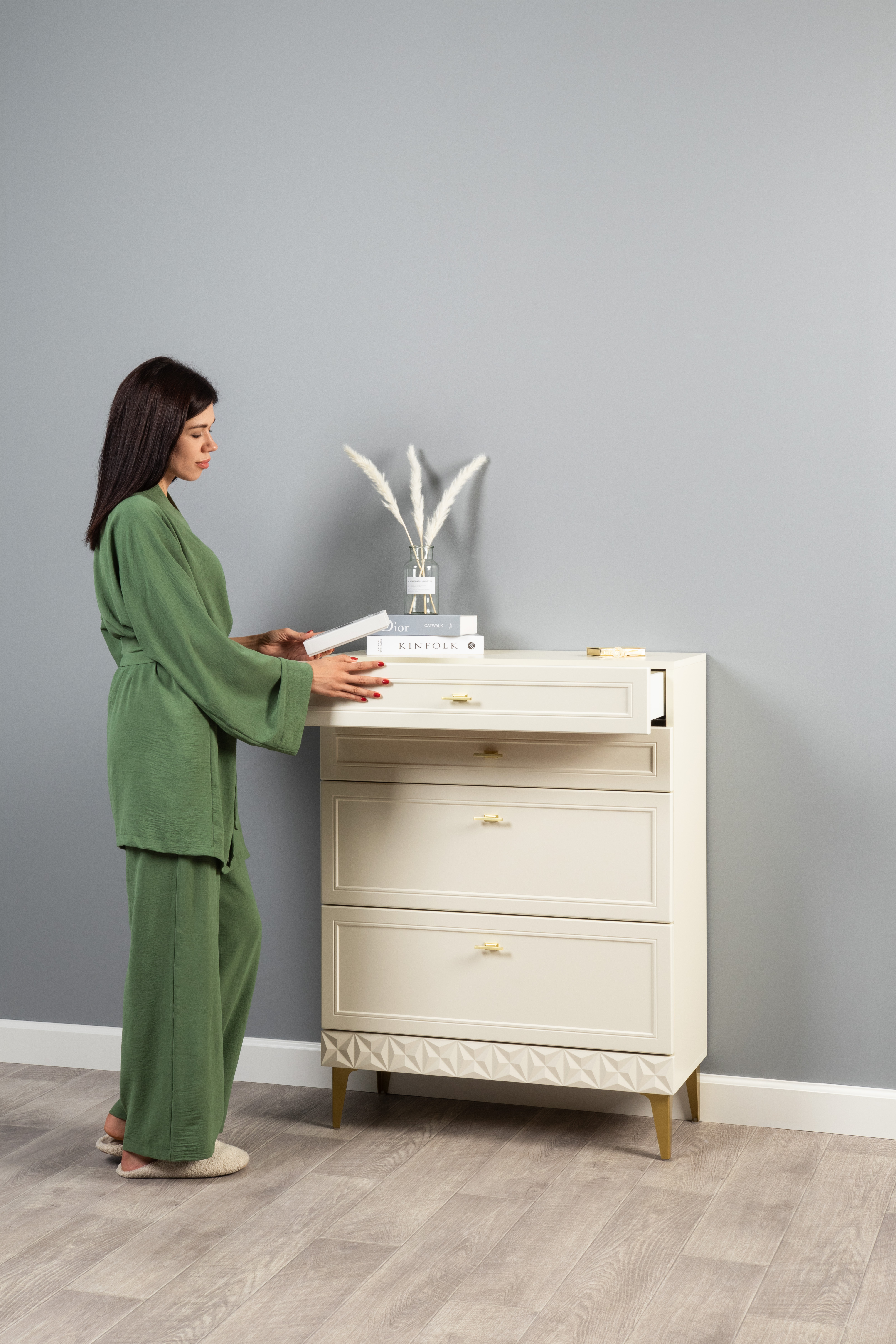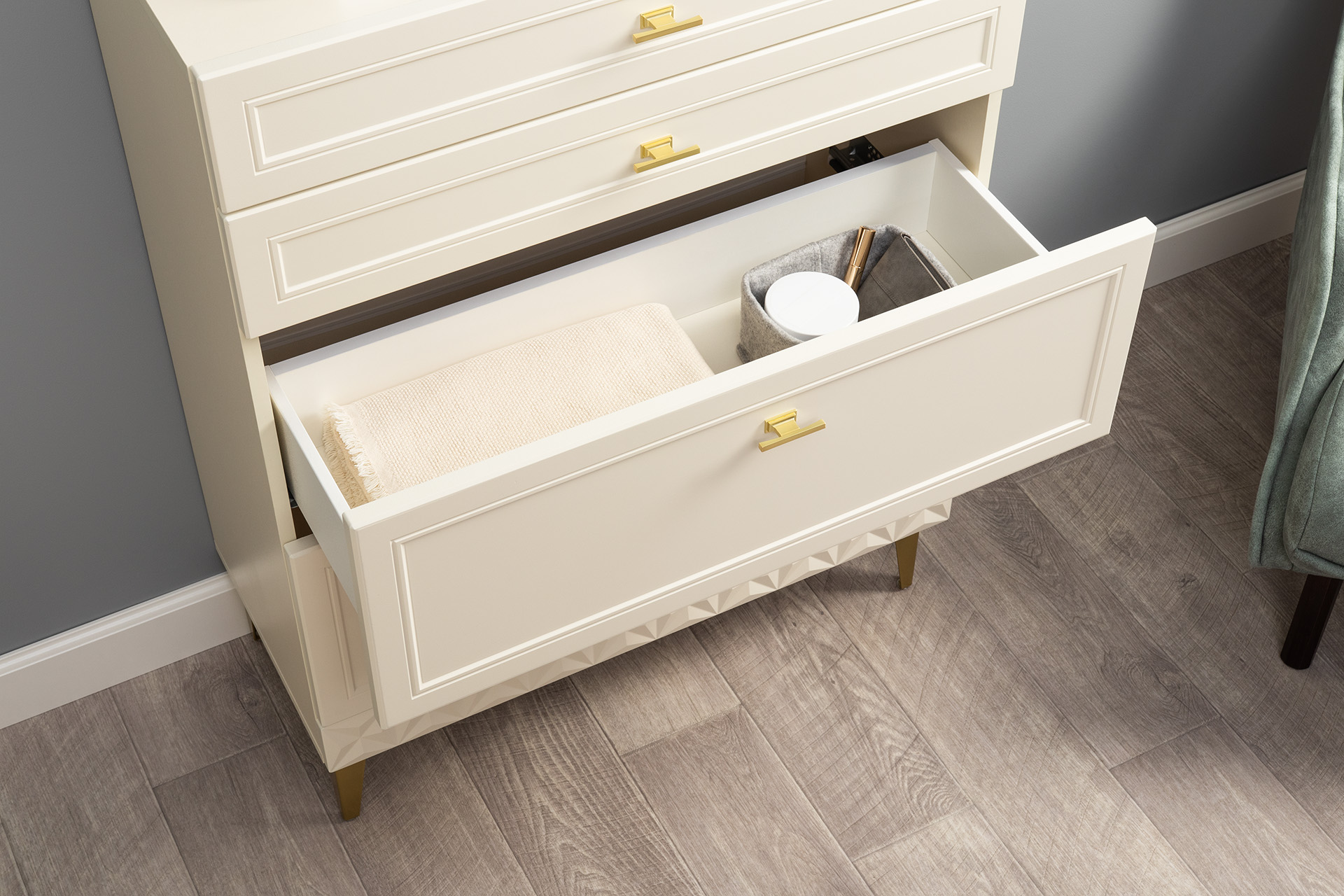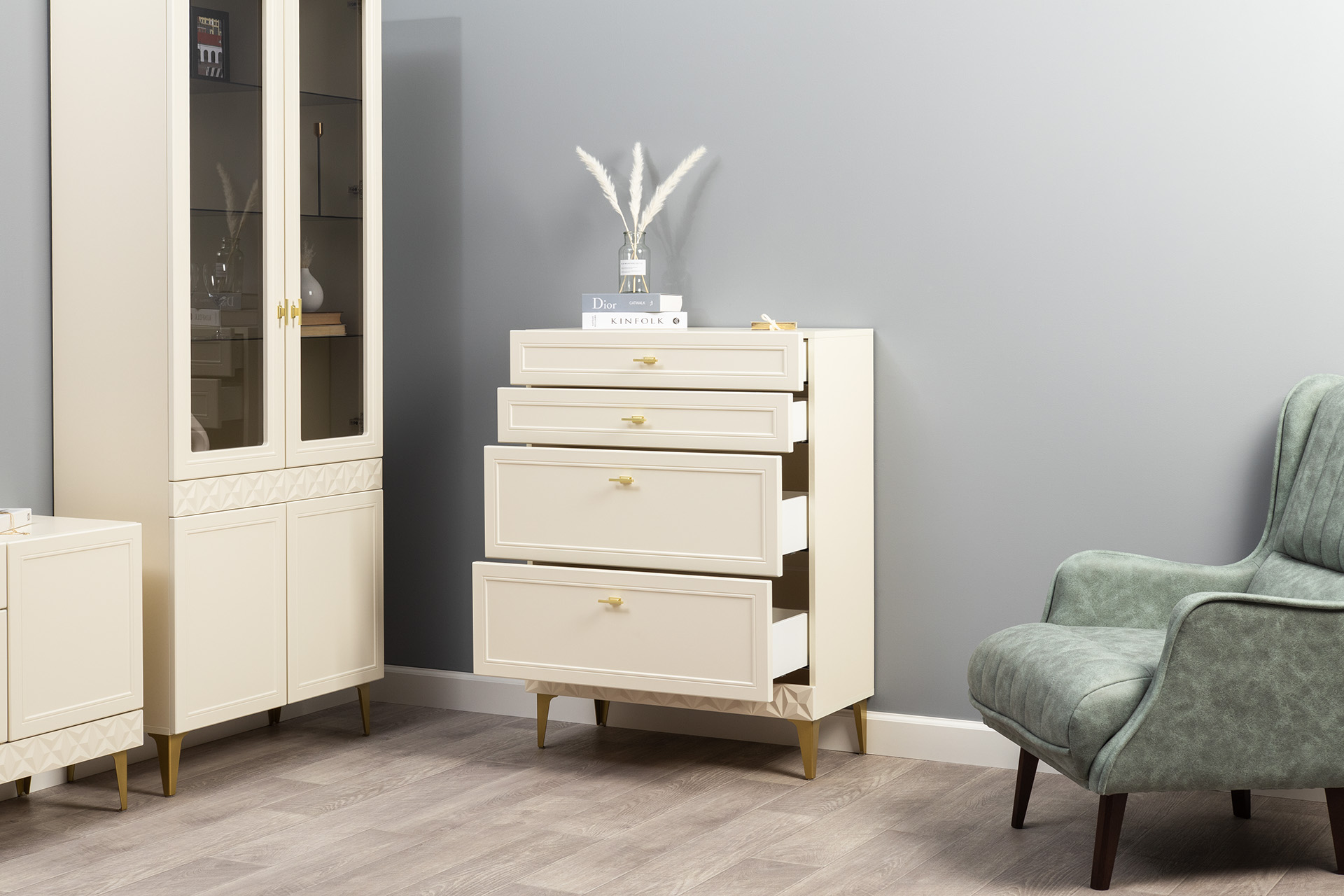 Комод Марион 16.249 слоновая кость С341 PE, слоновая кость 6898 ПВХ, белый PE шагрень
