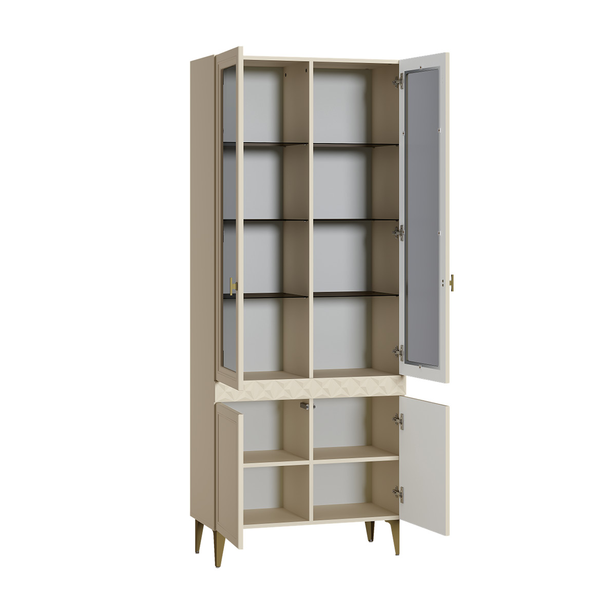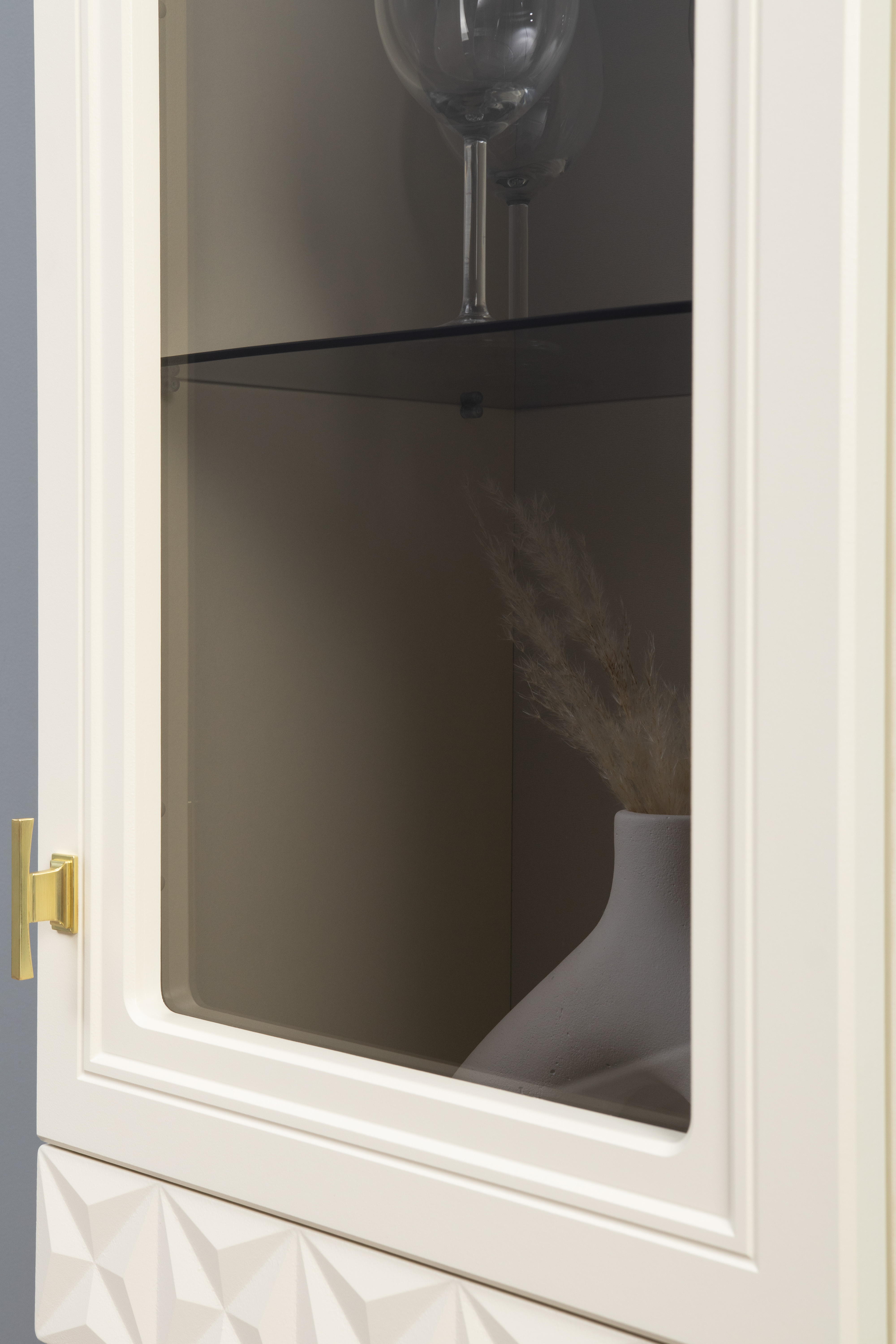 Шкаф-витрина Марион 16.397.01 слоновая кость С341 PE, слоновая кость 6898 ПВХ (собирается на любую сторону)