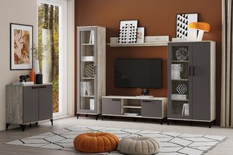 Гостиная Марсель композиция 1 софт графит, дуб крафт серый