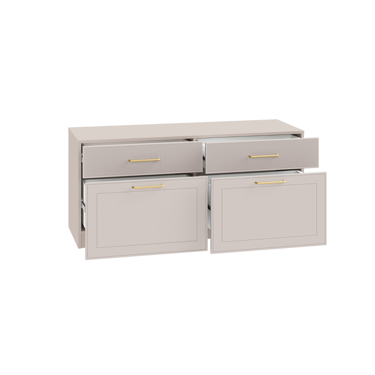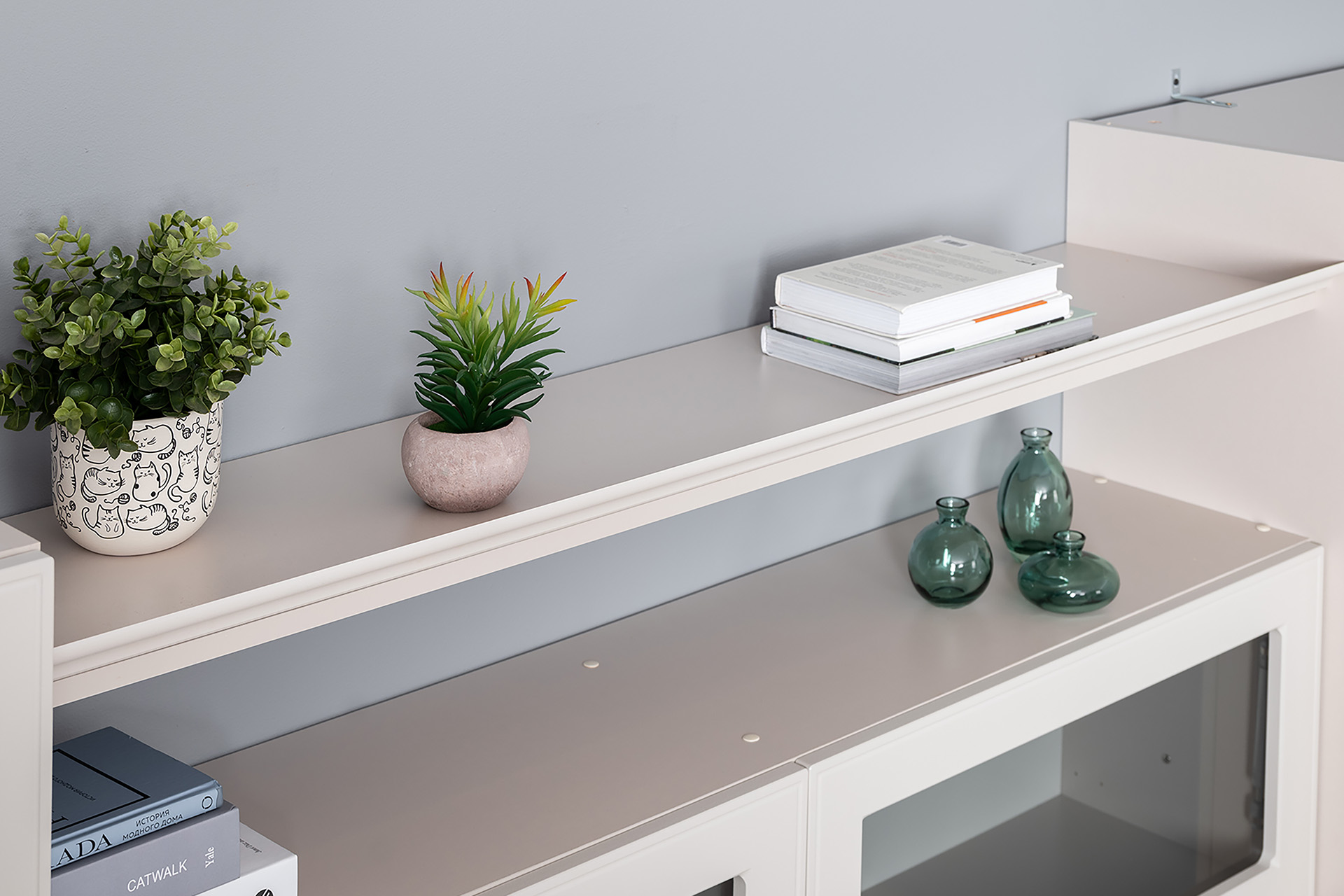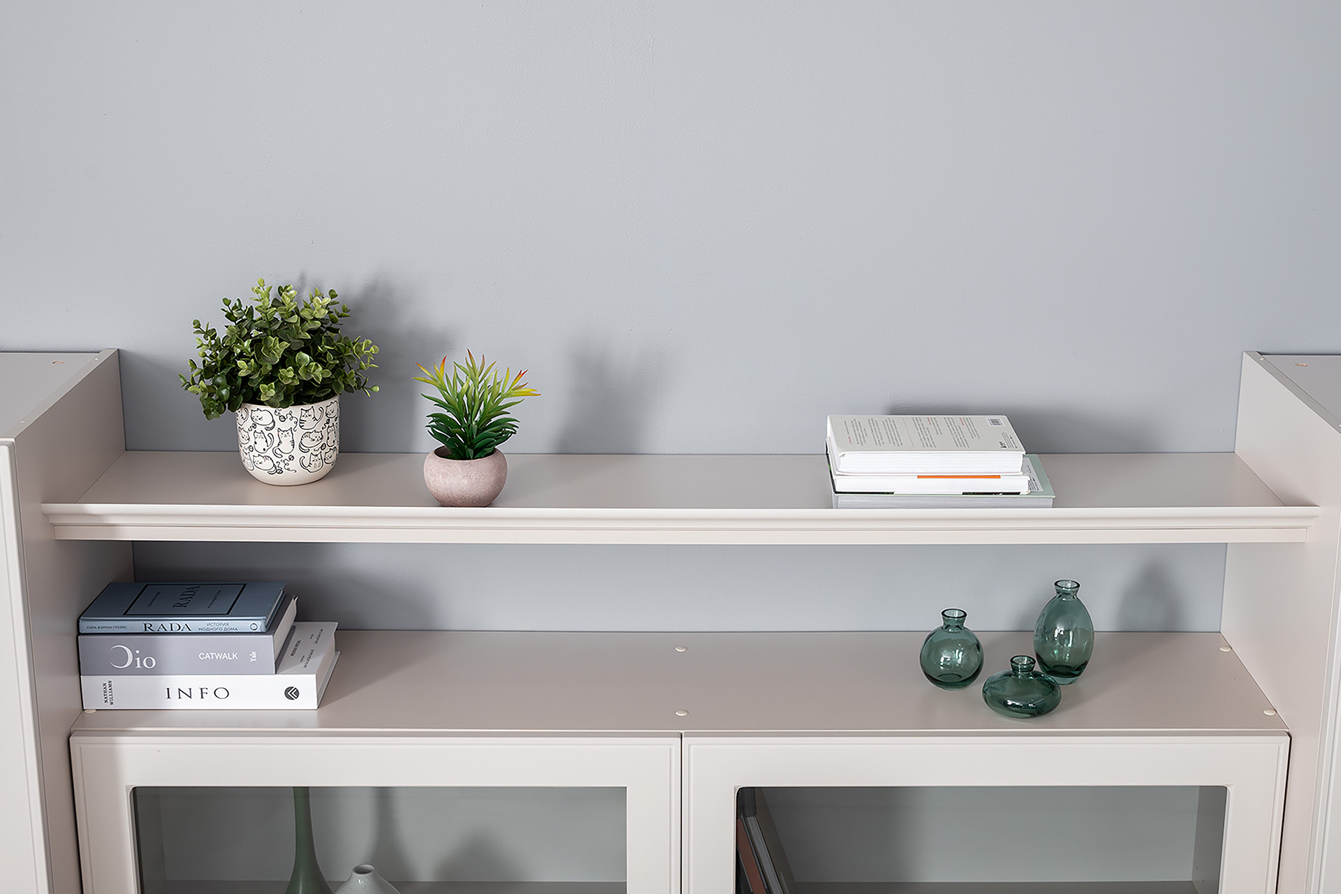 Гостиная Ричфорд композиция 2 с карнизами, кашемир 5981 BS, моно керамика D166-2 ПВХ, белый PE шагрень (собирается на любую сторону)