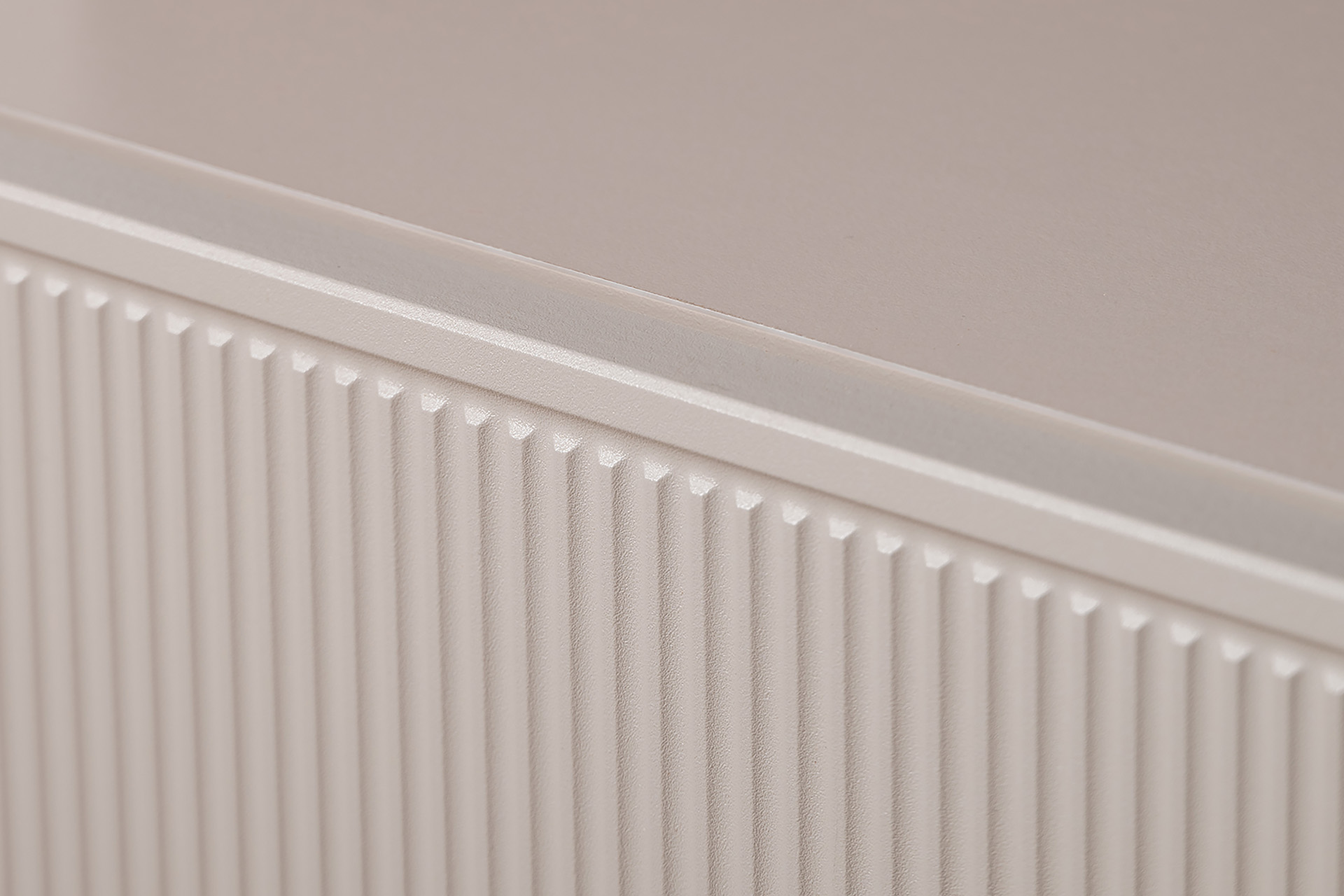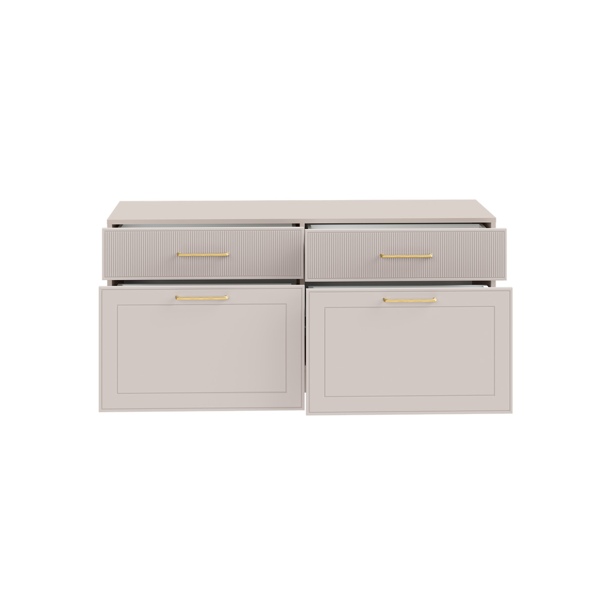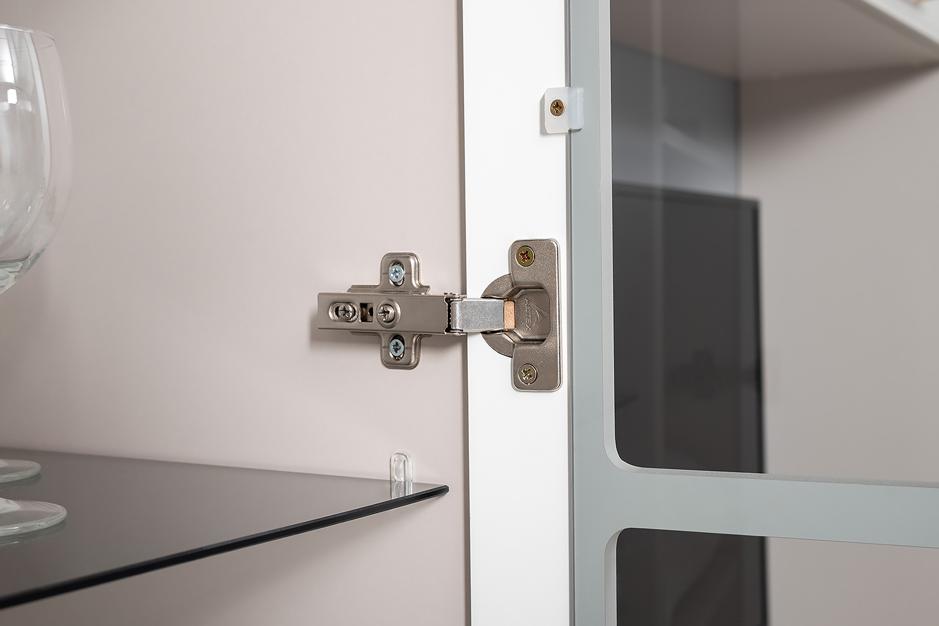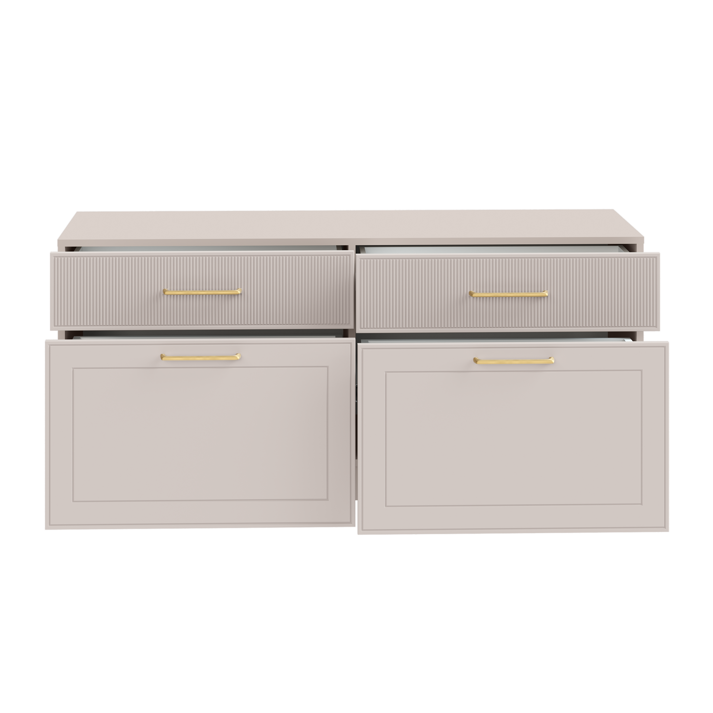 Гостиная Ричфорд композиция 2 с карнизами, кашемир 5981 BS, моно керамика D166-2 ПВХ, белый PE шагрень (собирается на любую сторону)