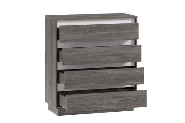 Комод VIRGINIA НМ 011.02 идеально впишется в интерьер современной гостиной или спальни. Модуль оснащен четырьмя вместительными выдвижными ящиками, что позволяет разместить в нем максимальное количество вещей. Шариковые направляющие полного выдвижения обеспечивают плавный и бесшумный ход ящиков. Вместо стандартных ручек на фасадах предусмотрены специальные углубления. Это исключает возможность случайного получения травм и придает дизайну модуля лаконичный вид.