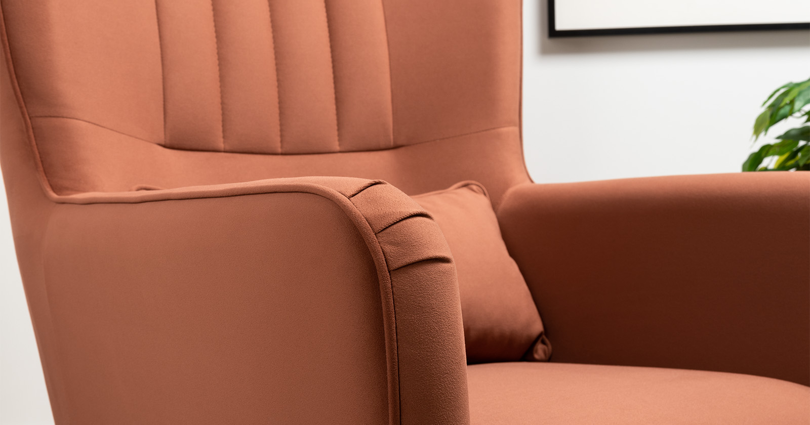 Вертикальная объемная стежка в средней части спинки; кант на спинке, подлокотниках и декоративной подушке