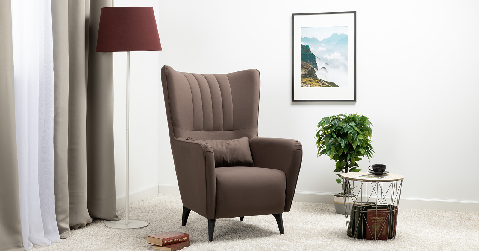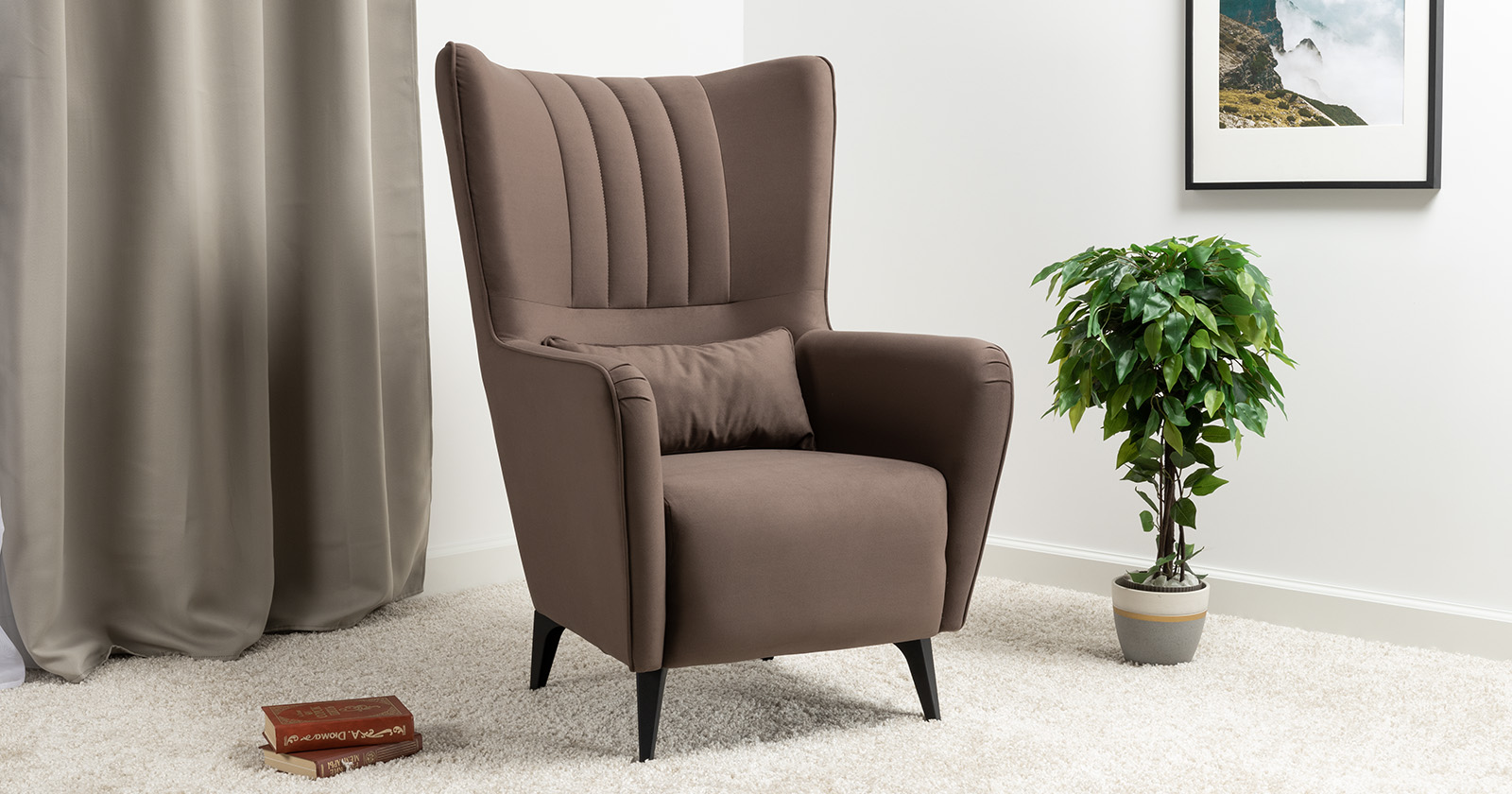 Классическое каминное кресло в современном прочтении. Элегантное кресло дополнит диван Ноэль или поможет организовать уголок для отдыха в гостиной, спальне или на лоджии. Высокая спинка с поясничной подушкой равномерно распределяет нагрузку на позвоночник, что позволяет качественно отдохнуть и расслабиться.