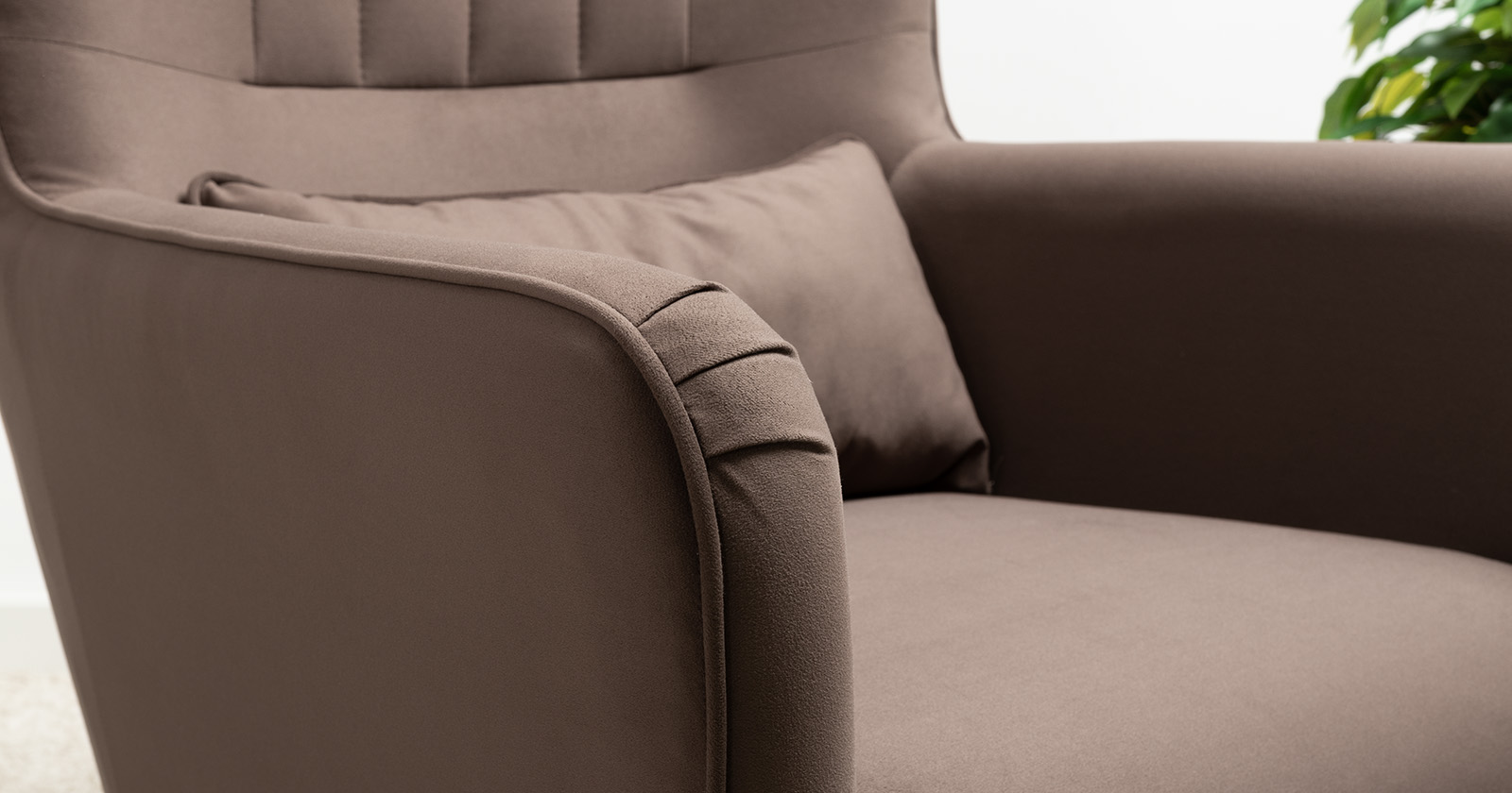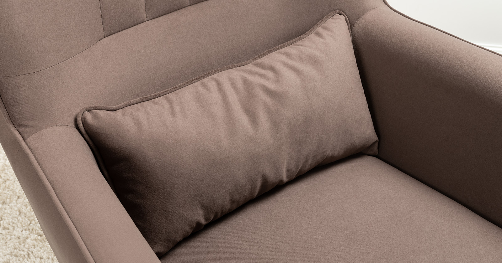 Вертикальная объемная стежка в средней части спинки; кант на спинке, подлокотниках и декоративной подушке