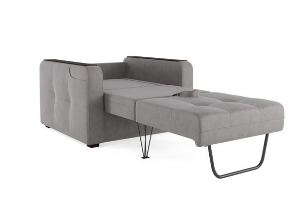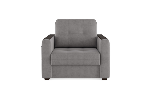 Кресло – кровать коллекции «SMART» - стильное и современное, с лаконичными прямыми формами, легко превращается в полноценное спальное место и так же быстро собирается обратно. Удобный механизм раскладывания "Каскад" не требует отодвигания от стены и работает из стационарного положения. Помимо односпального места и бельевого ящика модель оснащена накладками на подлокотниках, на которые удобно поставить кружку. На подлокотнике есть карман, чтобы гаджеты или книга были всегда под рукой. Модель не перегружена декором, поэтому подойдёт к большинству современных интерьеров. Можно так же заказать кресло без механизма трансформации с бельевым ящиком.