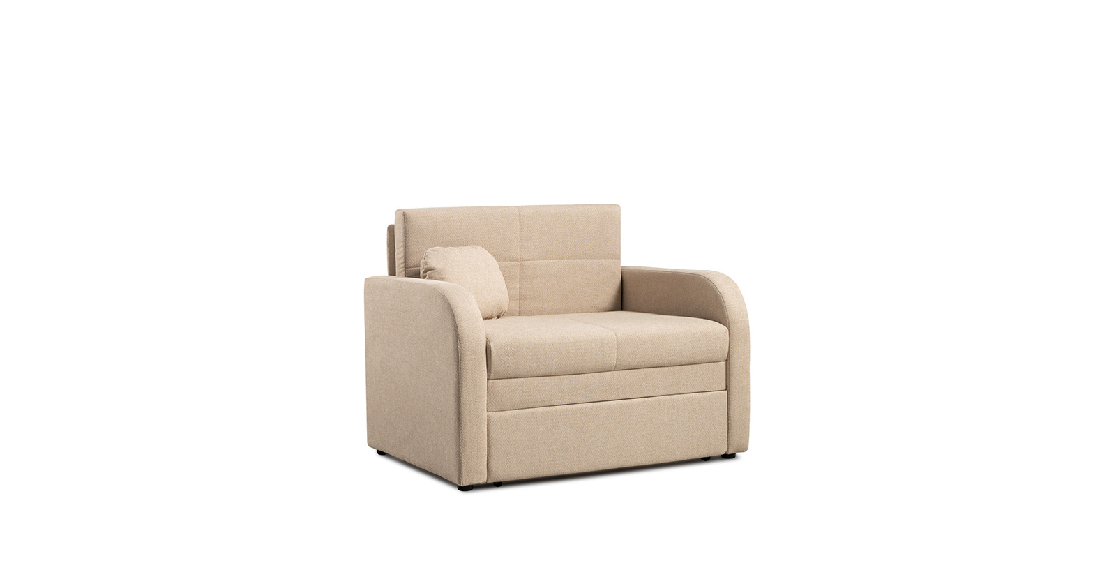 Коллекция выполнена в современном минималистичном стиле с мягкой обивкой из износостойкой ткани и декоративной стежкой, подчеркивающей геометрию форм. Механизм трансформации обеспечивает дополнительное спальное место, делая мебель не только эстетичной, но и максимально функциональной для небольших пространств.
