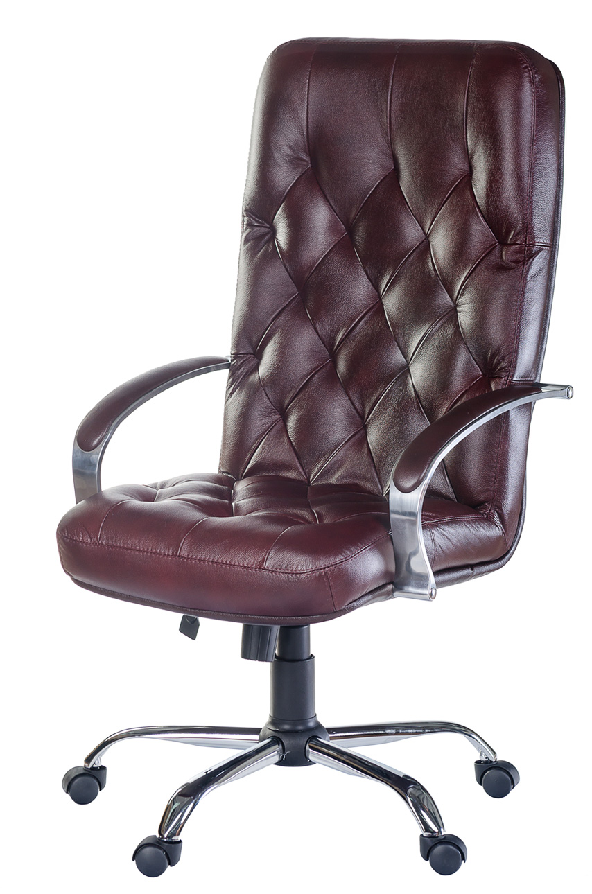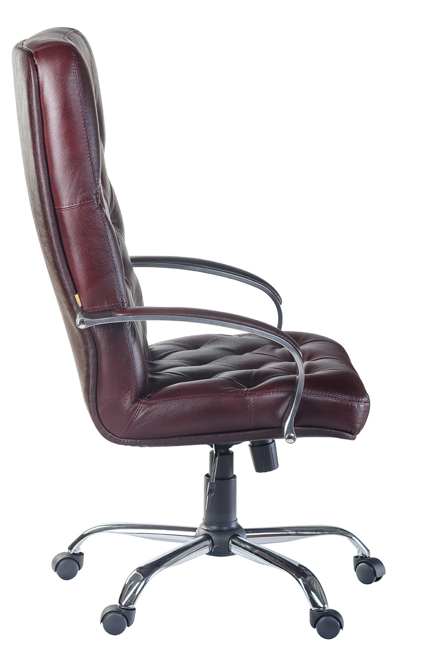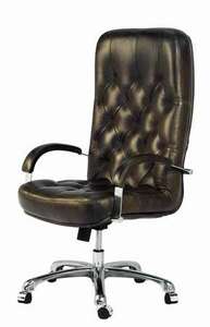 На фото предложено кресло Премьер в коже черная с хромированными крестовинами и подлокотниками.