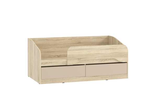 Кровать детская Акварель НМ 041.50 дуб сонома, капучино с мягкой спинкой Дабл велутто 16 велюр бежевый