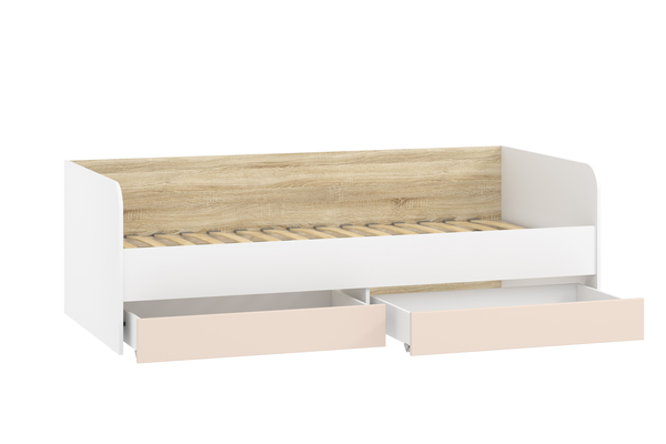 Кровать детская Банни НМ 041.38 с ортопедическим основанием, бисквит, белый, дуб сонома