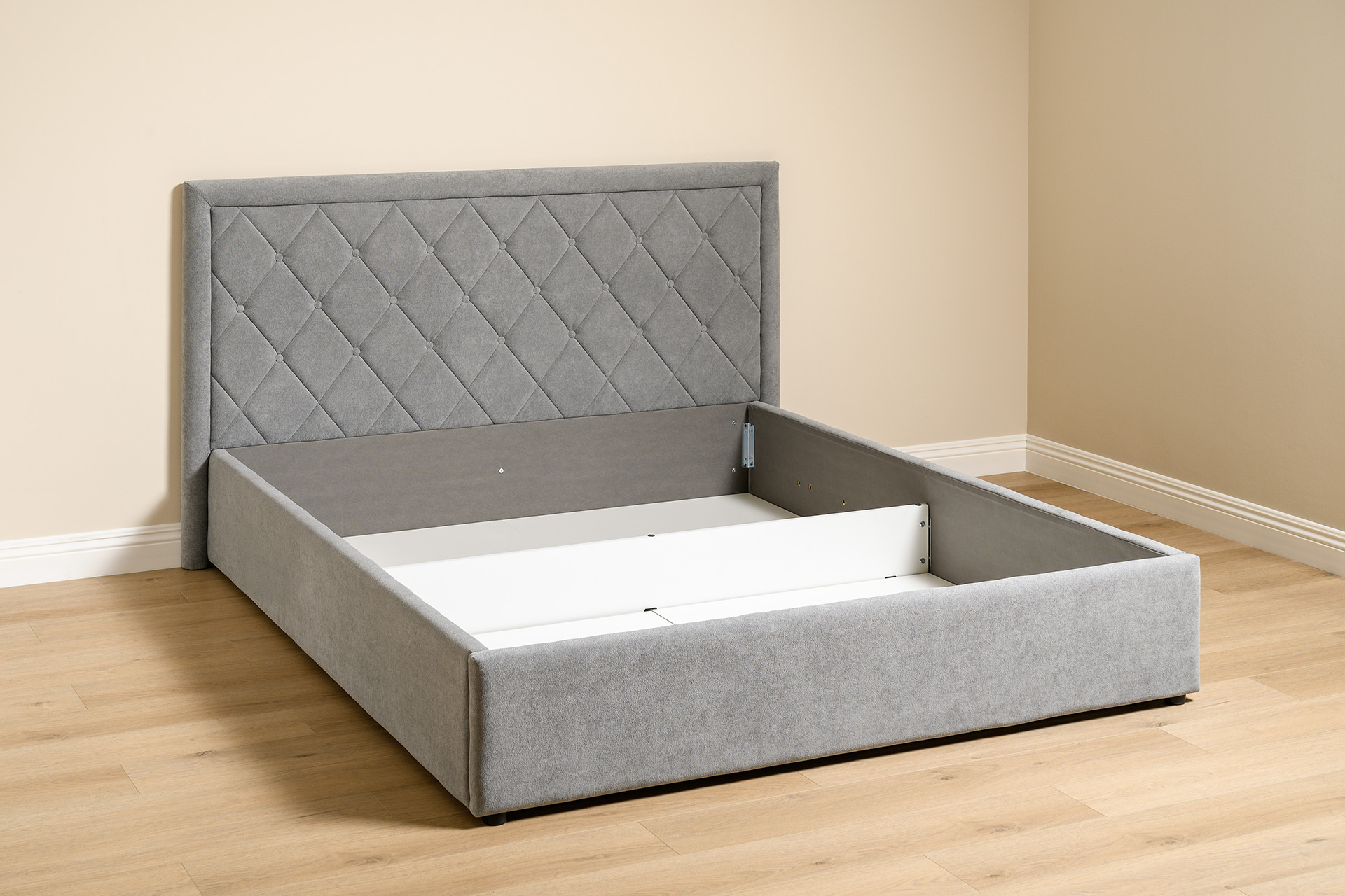 Основание кровати укомплектовано матрасодержателями. Жесткое кроватное дно из ЛДСП 16 мм на опорах 25 мм.