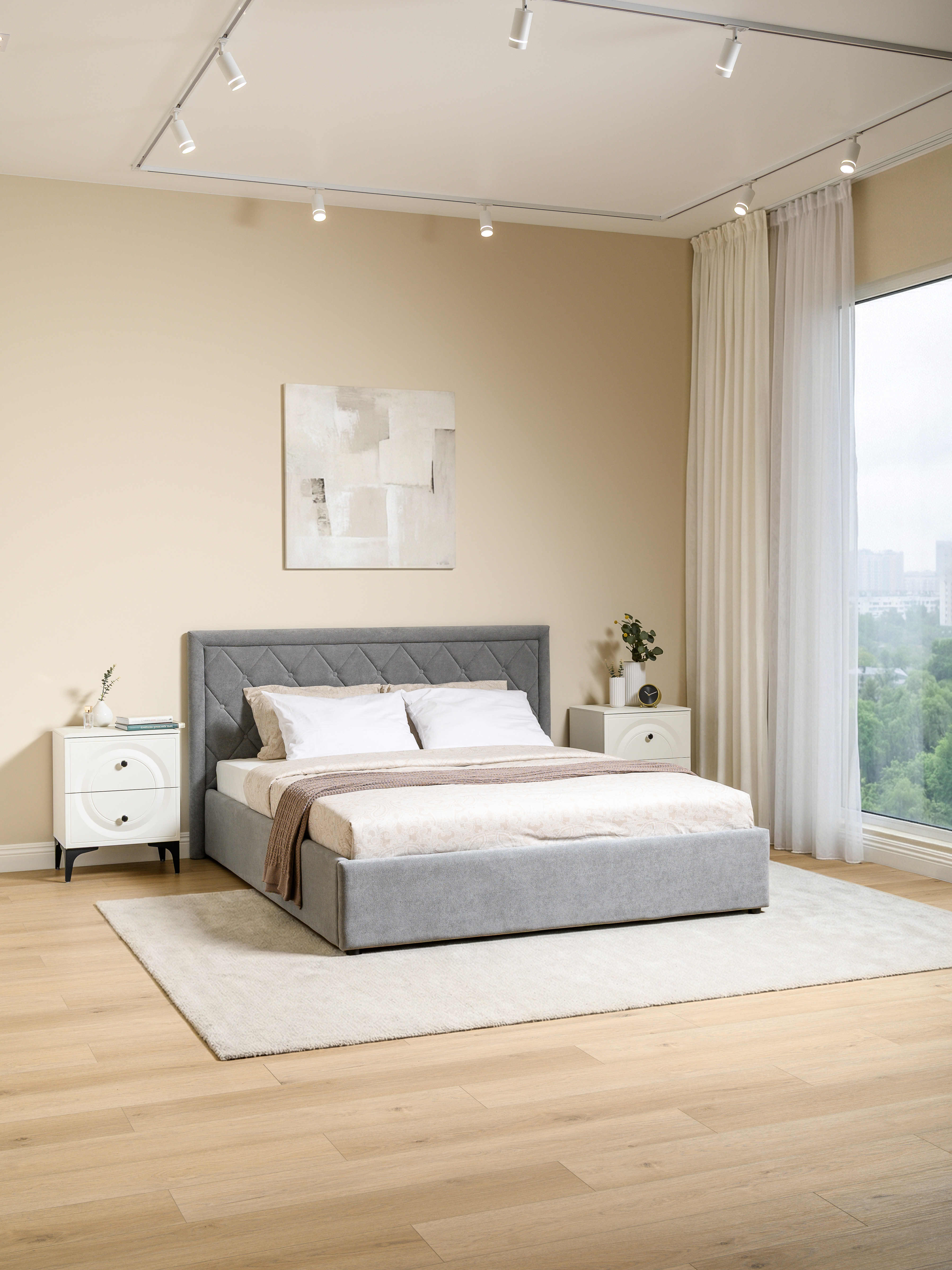 Кровать Марион — это идеальное сочетание стиля и комфорта. Элегантное изголовье оформлено стежкой в виде классической каретной стяжки, украшенной декоративными пуговицами, что придаёт изделию выразительный и утончённый вид. По всему периметру кровати проходит аккуратный валик, подчеркивающий геометрию и завершённость формы.