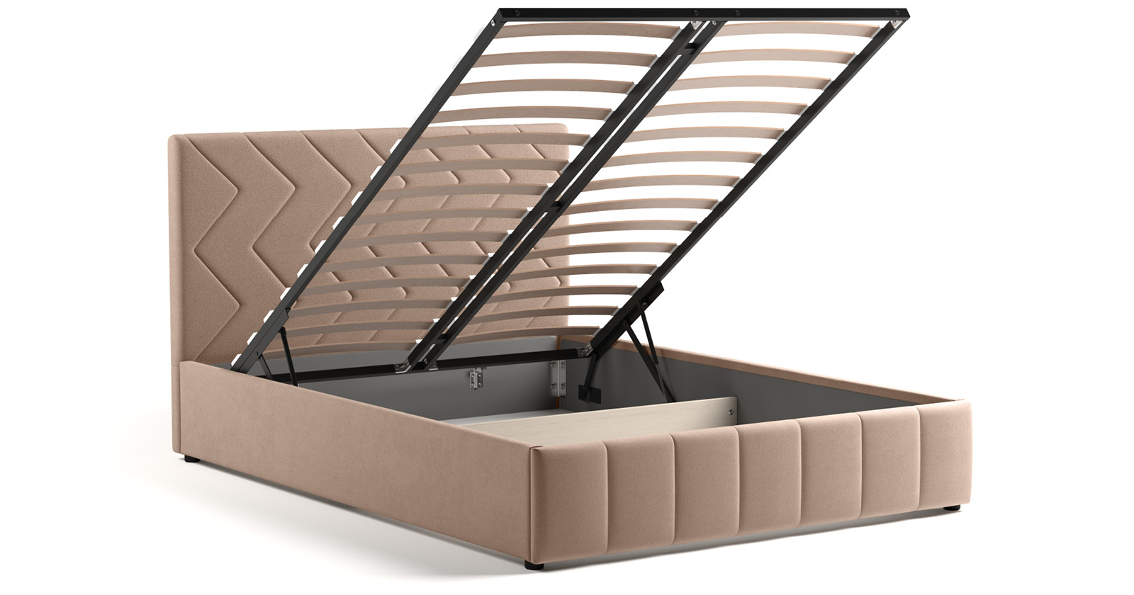 Кровать Милана 160 велюр бежевый кофейный с ортопедическим основанием и подъемным механизмом