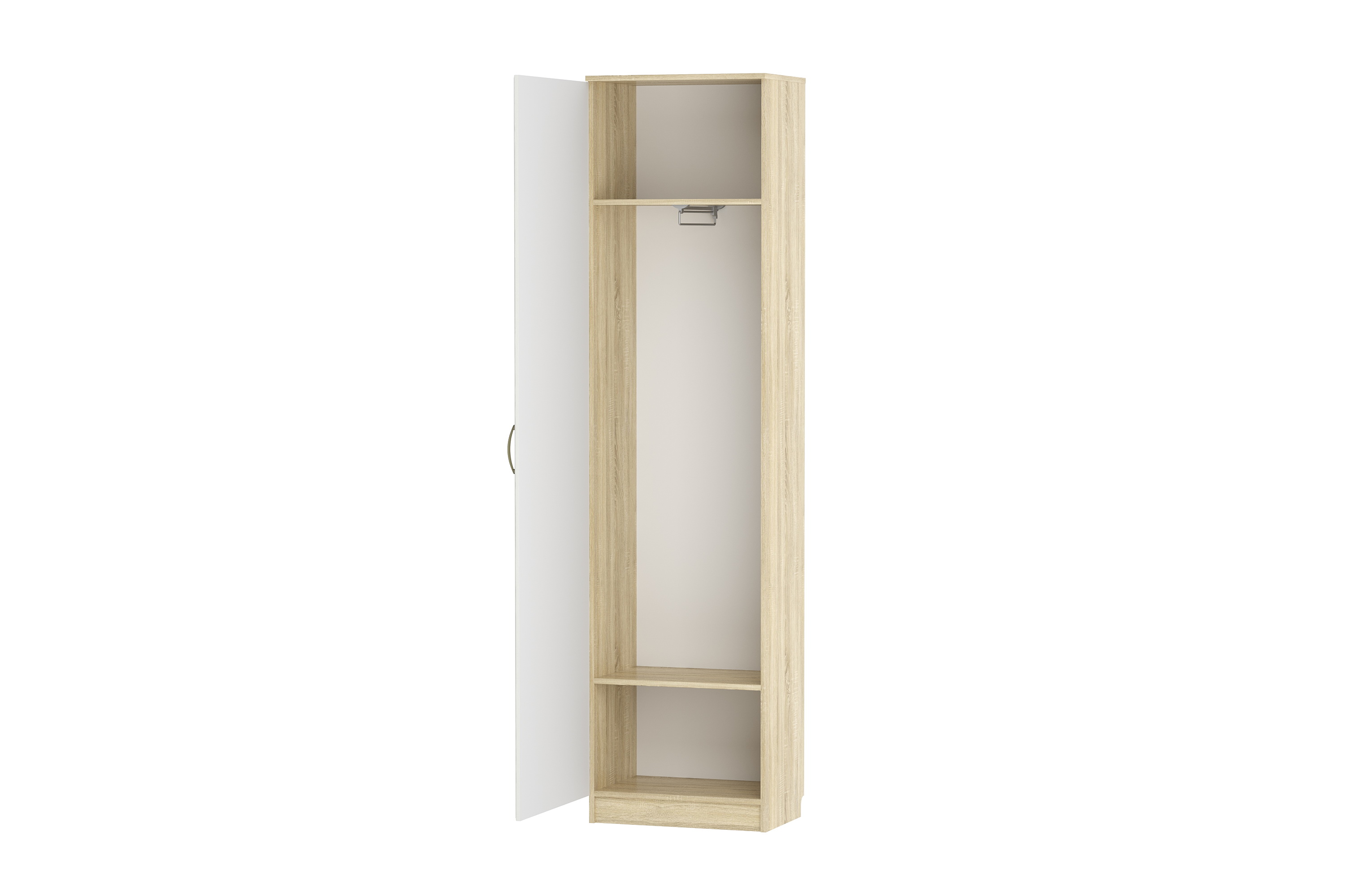 Одностворчатый шкаф Оливия НМ 014.71 Х не займет много места в детской, гостиной, спальне или прихожей. Выдвижная штанга обеспечит быстрый поиск нужного предмета гардероба. На антресольной полке удобно хранить негабаритную сезонную одежду, а нижняя полка лучше всего подойдет для хранения коробок с обувью. Для расширения функционала шкафа можно дополнительно приобрести комплект полок.