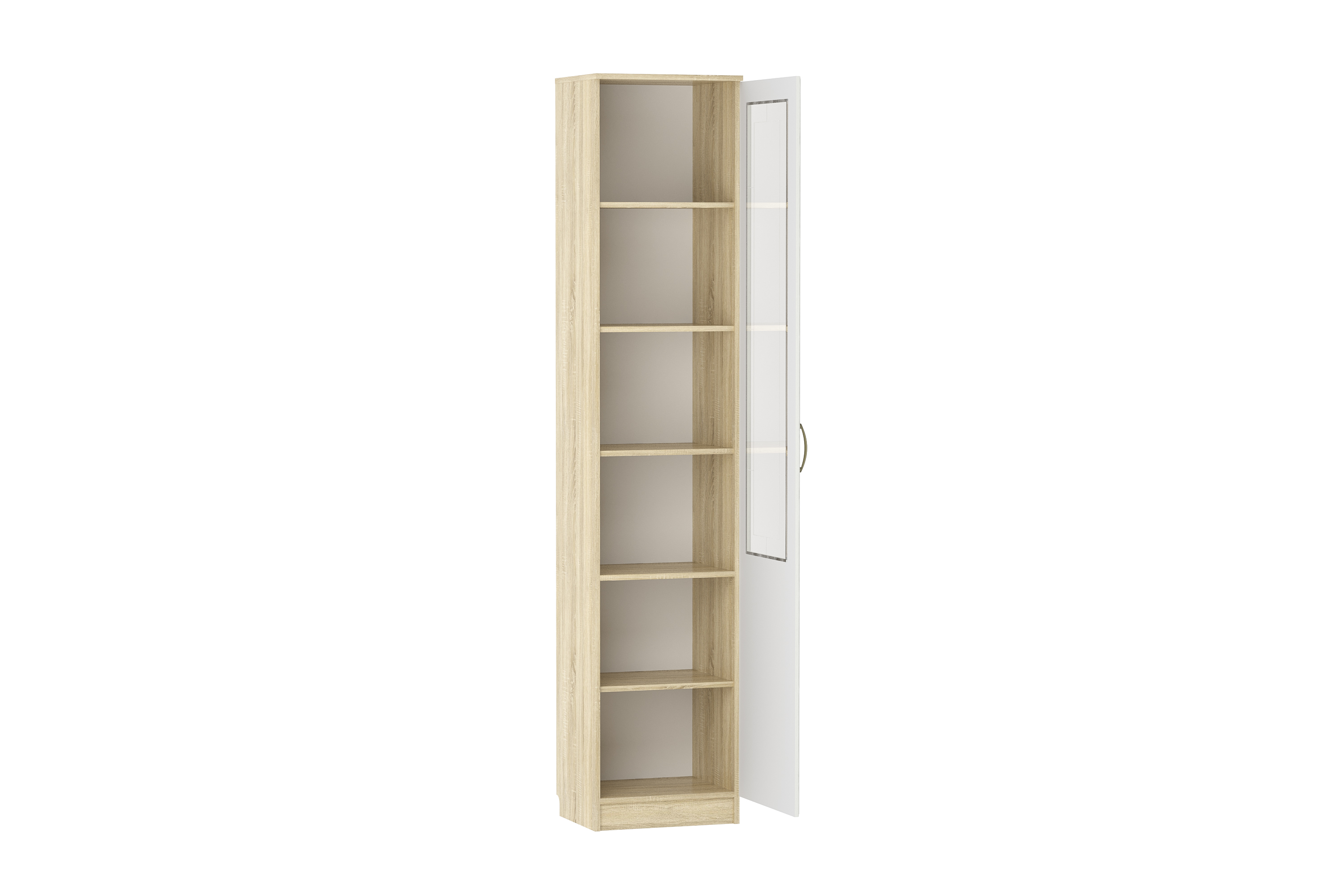 Шкаф Оливия НМ 040.43 Ф не займет много места в гостиной. Модуль изготавливается в двух вариантах на выбор клиента: с глухим фасадом и с витриной. Шкаф со стеклом понравится тем, кто хочет добавить больше света в пространство гостиной. Вариант с глухим фасадом подойдет для тех, кто хочет хранить в шкафу одежду. Внутри модуля на пяти полках можно разместить большое количество вещей.