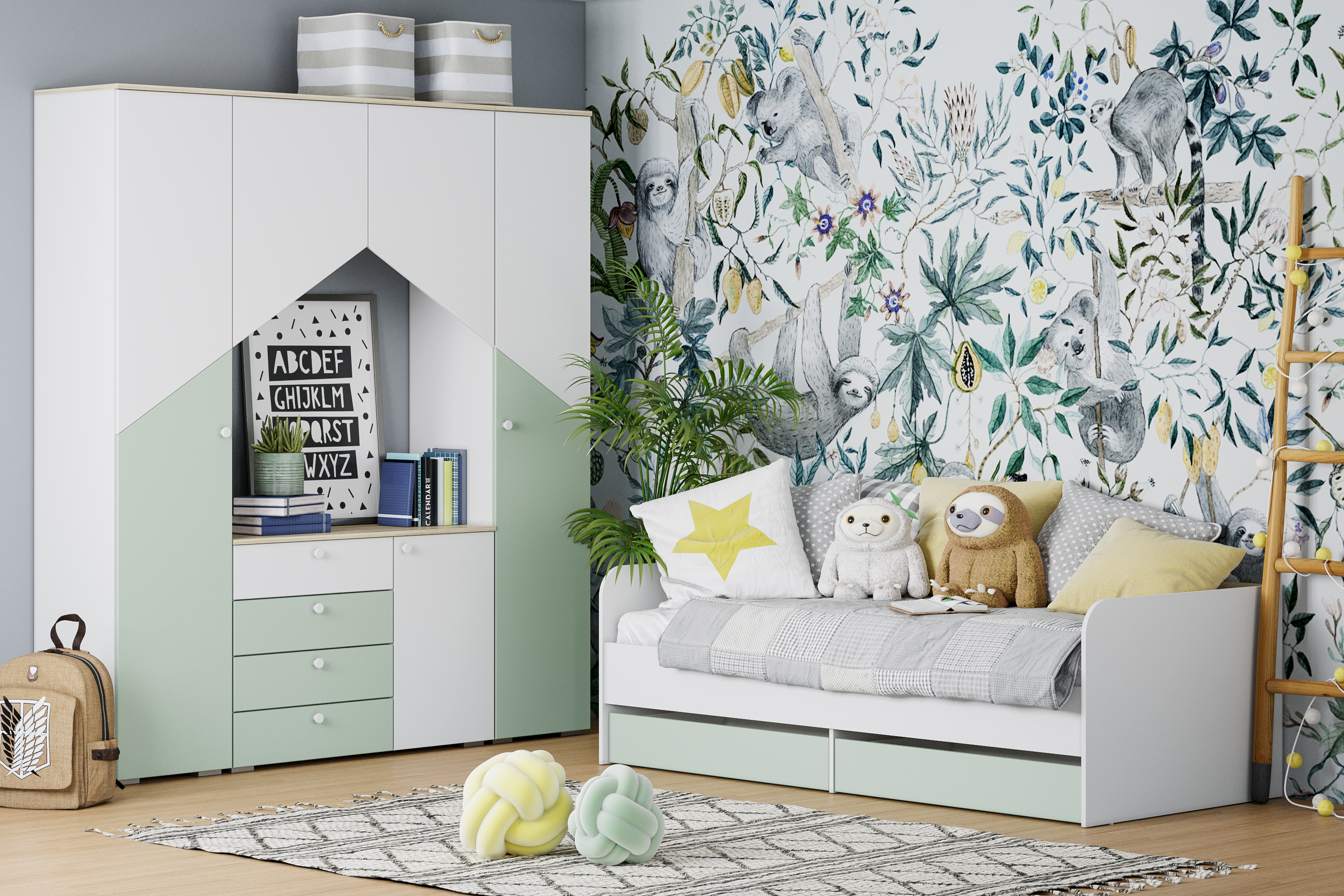 Детская комната Банни композиция 1 меренга, макарун, белый, дуб сонома