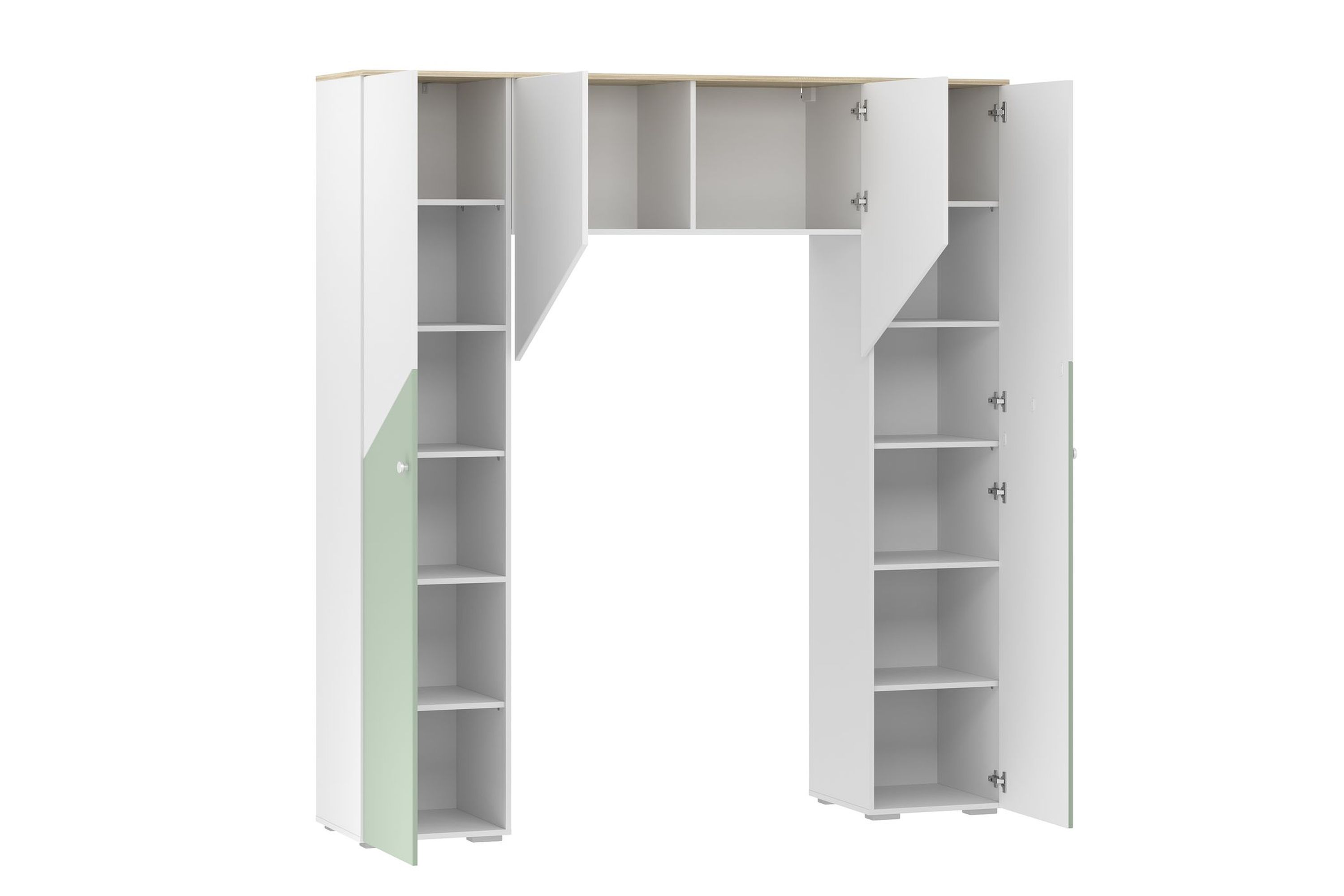 Шкаф комбинированный НМ 041.45 Банни представляет собой 2 шкафа для одежды соединённых между собой навесной полкой с двумя дверцами.