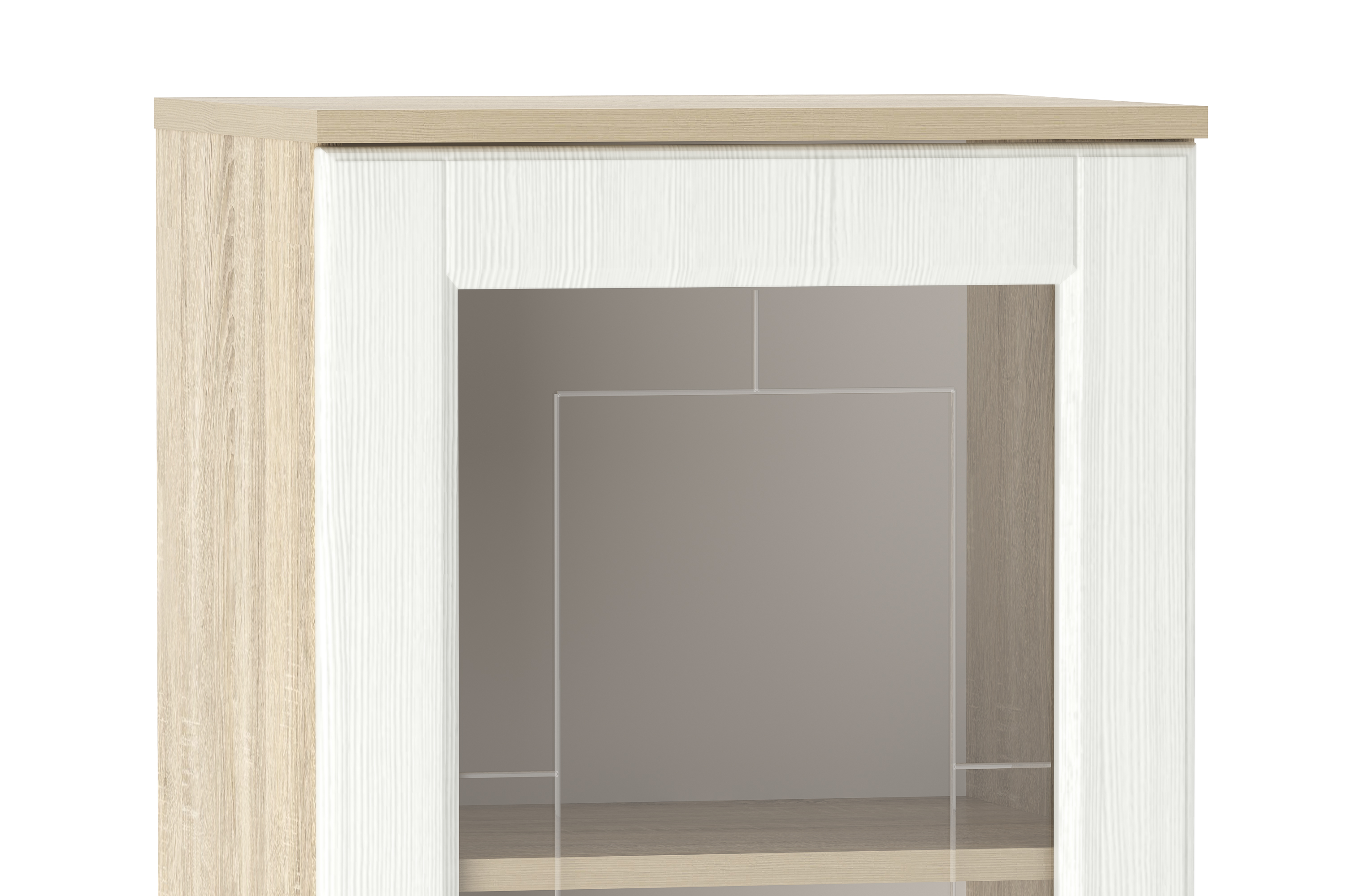 Двустворчатый шкаф-витрина Оливия НМ 040.62 Ф добавит больше света в пространство гостиной. Полка за стеклянной вставкой идеальна для размещения домашней библиотеки или изящного фарфорового сервиза. В закрытом отделении можно хранить документы, элементы одежды и другие бытовые предметы.