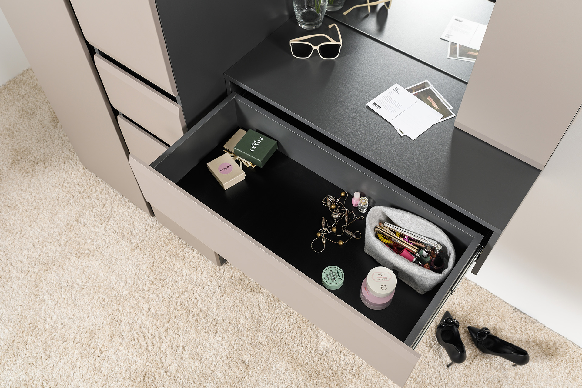 Вместительная система для хранения одежды, обуви и хозяйственных принадлежностей.