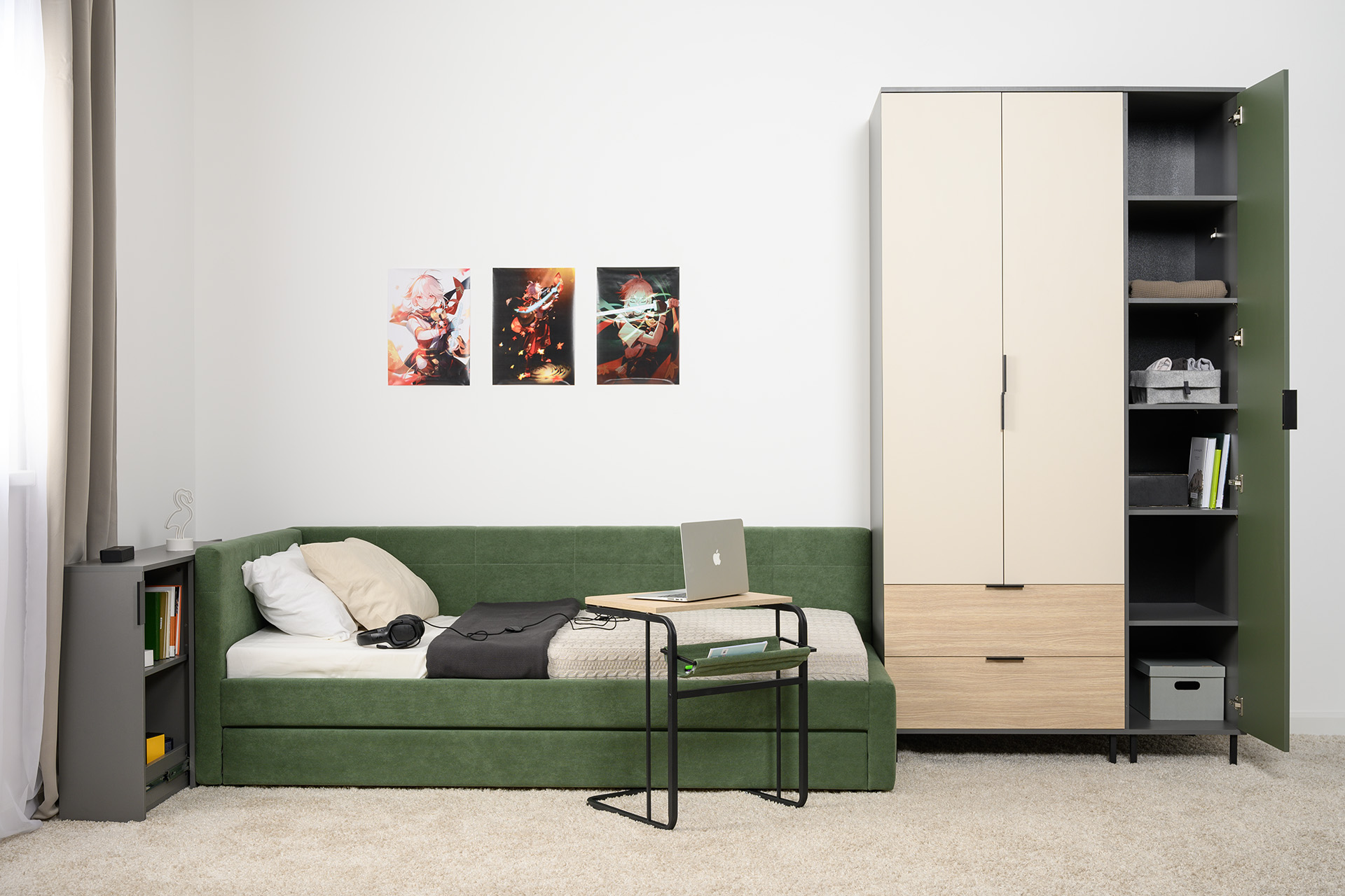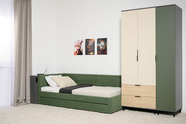 Кровать одинарная Марвэл 90 EPIC MOSS (зелёная) с ортопедическим основанием (универсальная сборка)