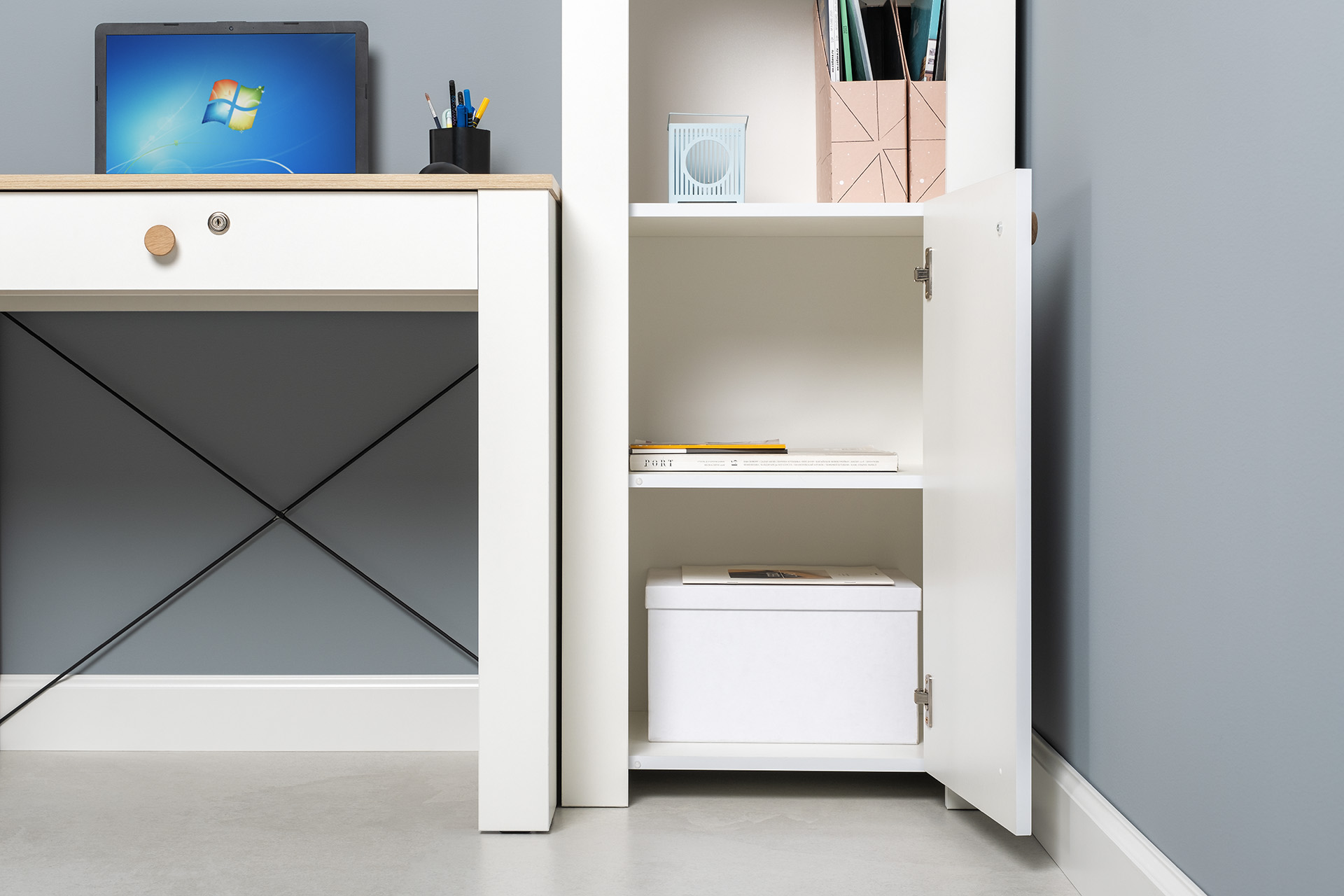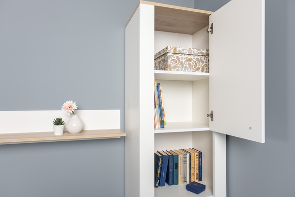 Шкаф торцевой Джастин 16.306 белый PE шагрень, дуб белый exclusive OW D4430 (собирается на любую сторону)
