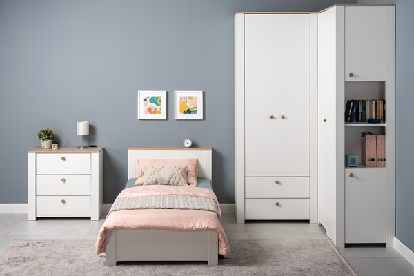 Джастин – новинка в скандинавском стиле. Светлая и лаконичная, она станет не акцентом, а идеальным фоном для жизни, учебы, отдыха и игр.