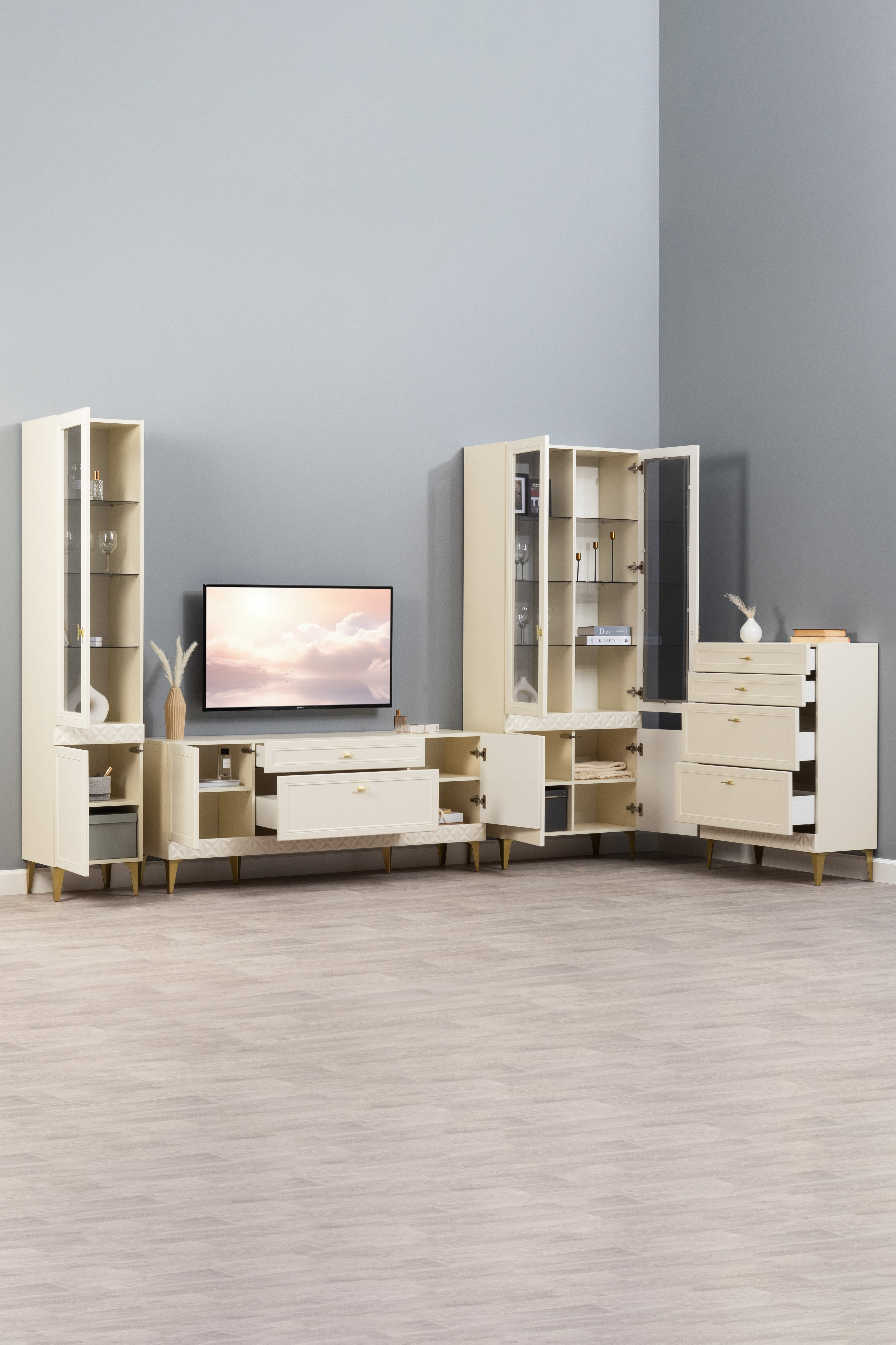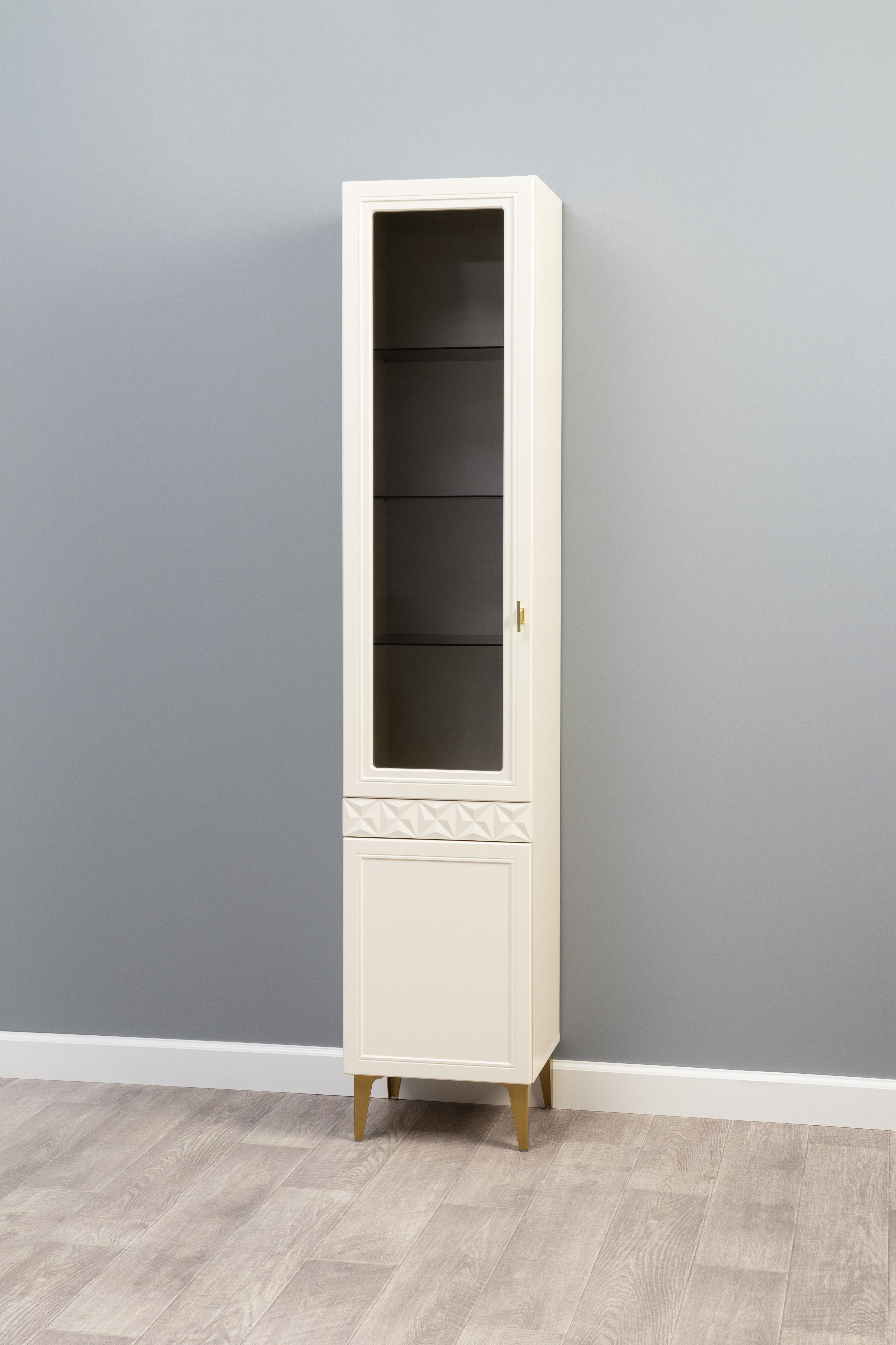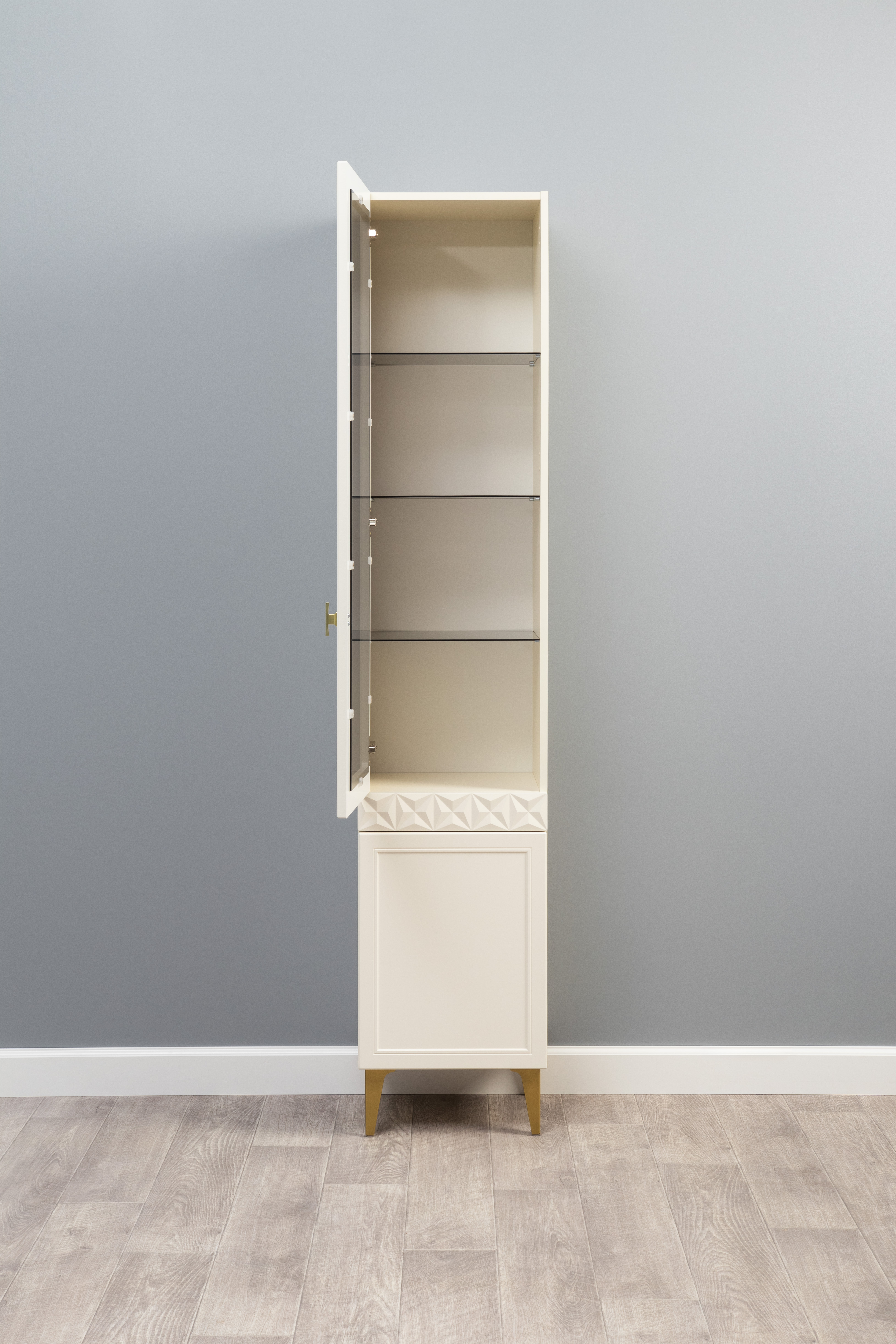 В коллекции представлены три типа витрин с тонированным закалённым стеклом, которые придают пространству лёгкость и свет. «Марион» — идеальное сочетание традиций и актуального дизайна в каждой детали.