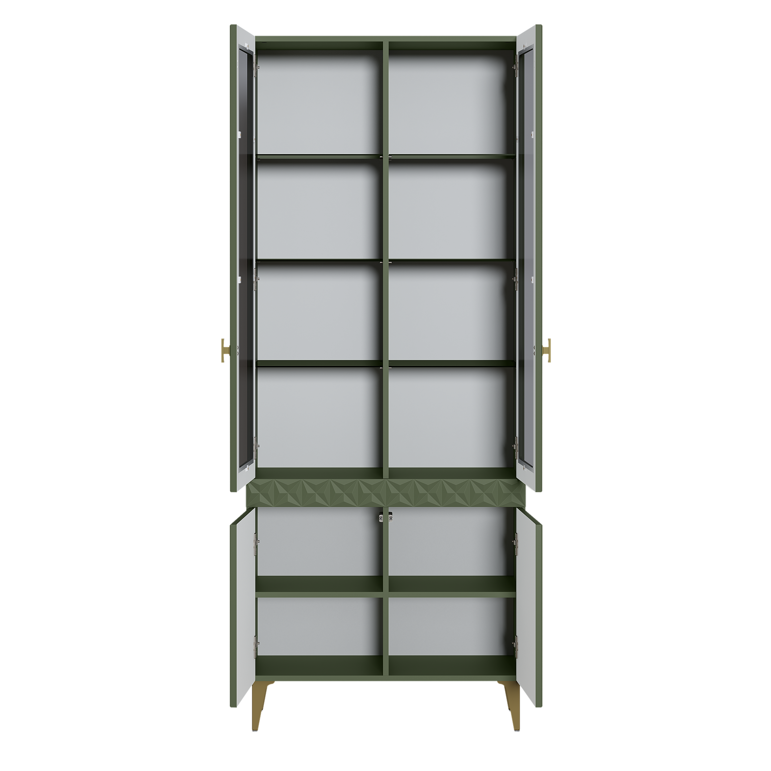 Шкаф-витрина Марион 16.397.02 дымчатый зеленый K521, олива шагрень AG 1050 ПВХ (собирается на любую сторону)