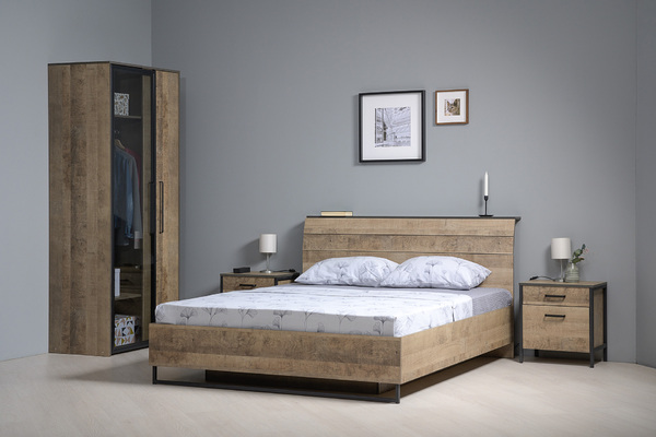 Спальня Livorno композиция 2 дуб бунратти, софт графит (кровать с ортопедическим основанием и подъемным механизмом)