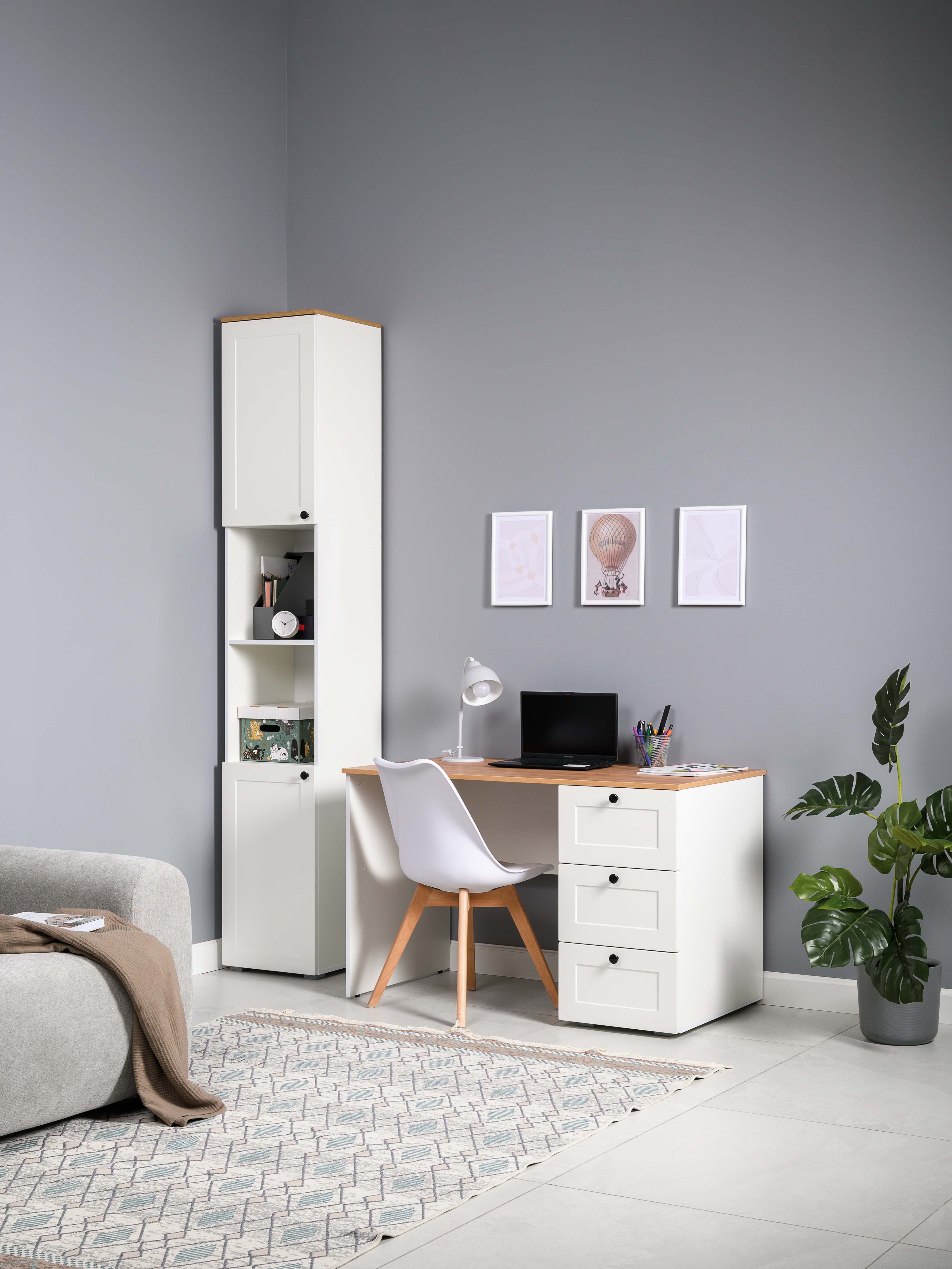 Стеллаж Остин 16.427 белый PE шагрень, дуб золотой CRAFT, белая шагрень 4101 ПВХ, сборка на любую сторону