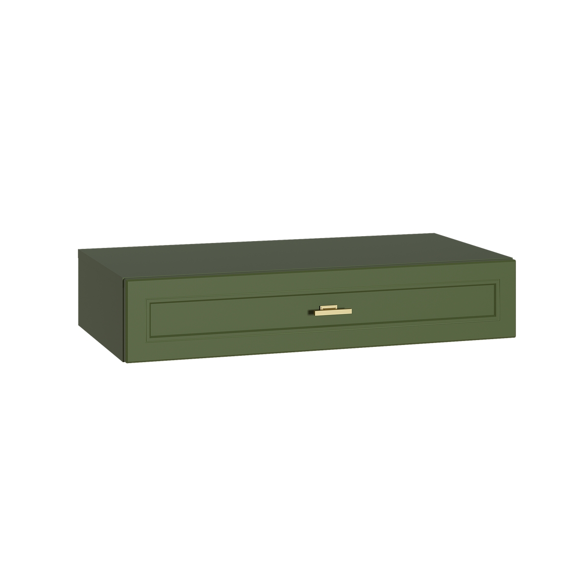 Изящные линии, глубокая фрезеровка фасадов из МДФ и благородные оттенки. Утончённая «Слоновая кость» и изысканная «Олива Шагрень» с глубоким зелёным тоном — создают атмосферу уюта, тепла и благородства. Металлические ручки и опоры золотого цвета придают мебели утончённый блеск, а петли и направляющие с доводчиками обеспечивают плавное и бесшумное закрытие фасадов.