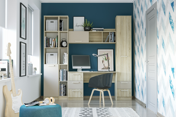 Письменный стол НМ 011.47-01 М2  поможет обустроить комфортный учебный уголок в детской. На рабочей поверхности модуля достаточно места для размещения не только письменных принадлежностей, но и ноутбука. Закругленные углы столешницы делают эксплуатацию модуля безопасной для ребенка. По окончании занятий ребенок сможет убрать книги и тетради в выдвижные ящики для поддержания порядка на рабочем месте.