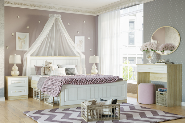 Кровать детская Оливия НМ 041.50 дуб сонома, белое дерево (спальное место 90х200)