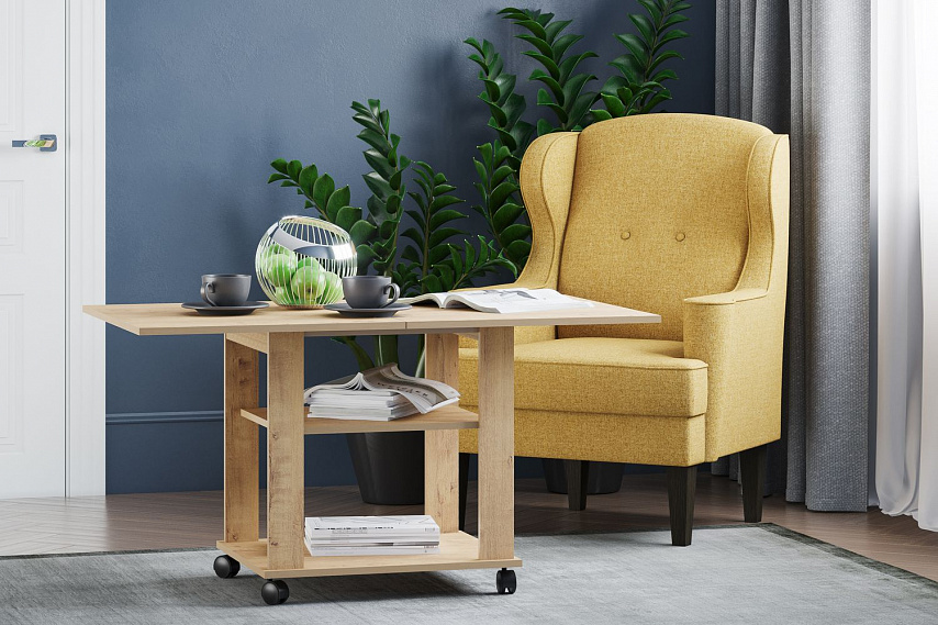 Привлекательный, стильный и компактный журнальный стол "Консул" органично впишется в интерьер даже самой маленькой комнаты. Универсальная модель подойдёт к любому по стилю интерьеру. В собранном виде его часто используют в качестве тумбочек, подставок под цветы или фотографии. Несомненный плюс – это наличие полки, которой можно пользоваться в разложенном и сложенном виде. За считанные секунды компактный журнальный стол увеличивается в два раза по габаритам, становясь просторной зоной для приёма гостей.