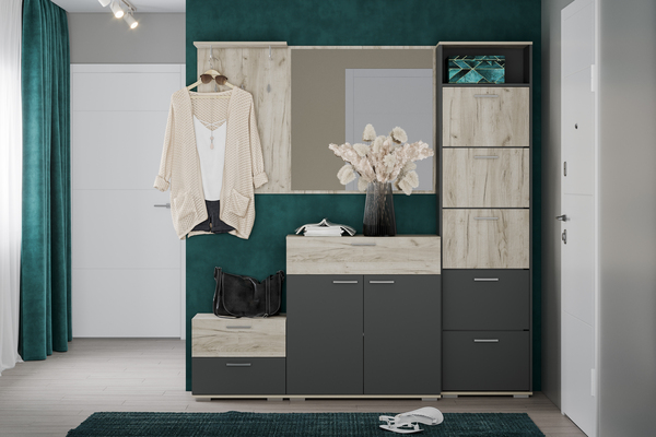 Тумба для обуви в прихожую Юнона дуб белый CRAFT, серый шифер