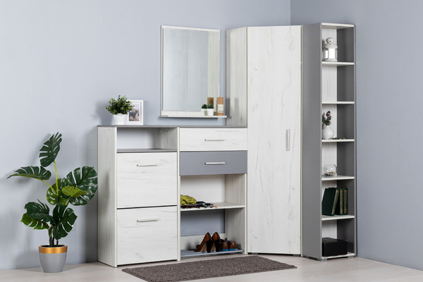 Шкаф торцевой в прихожую Юнона 13.221 дуб белый CRAFT, серый шифер